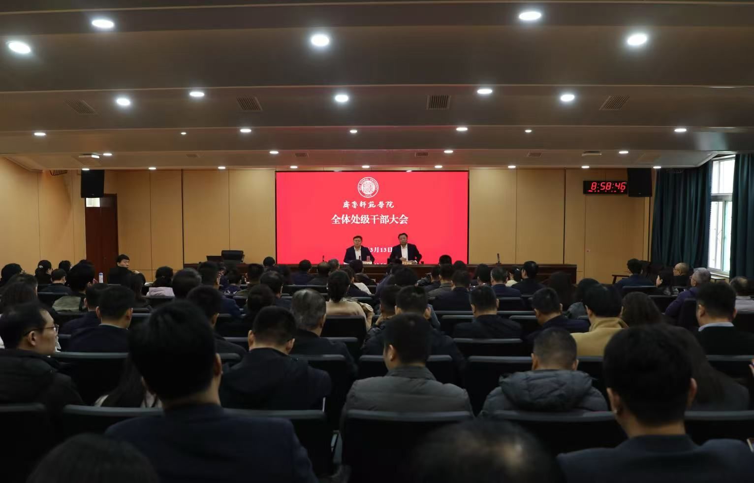 3月13日上午,学校在章丘校区第二学术报告厅召开全体处级干部大会,学校领导、全体处级干部参加会议,党委书记林松柏主持会议并讲话,党委副书记、校长郑秀文部署安排学校2025年工作。郑秀文从全面加强党的建设...查看更多 -