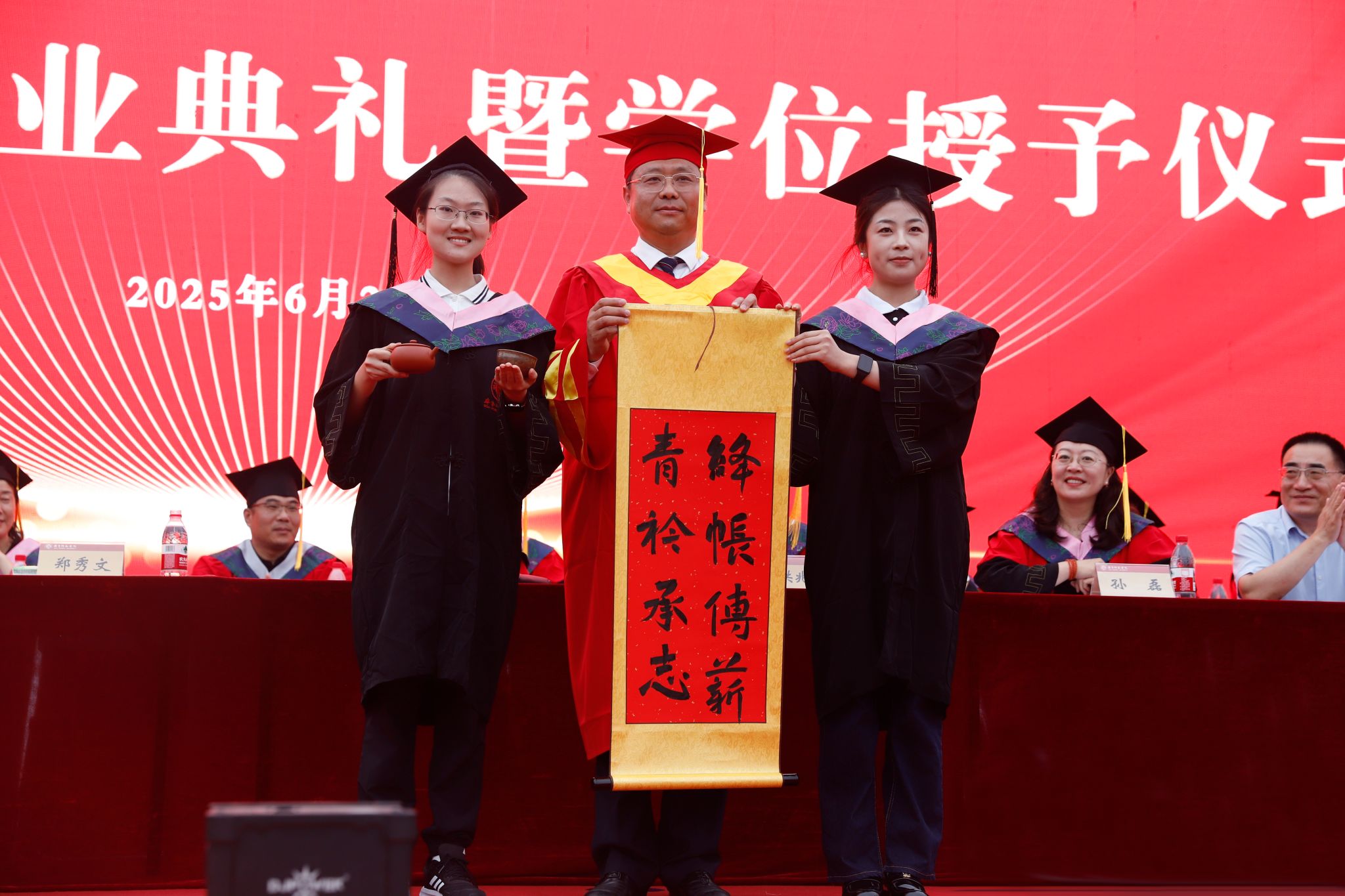 郑秀文以《在诚实中扎根 在坚持中成长 在担当中绽放》为题,向毕业生深情寄语。他首先对2025届毕业生取得的优异成绩表示高度肯定和热烈祝贺,并围绕“诚实、坚持、担当”三个关键词,向毕业生提出殷切期望:一是坚守初心,在诚实中扎根,做一诺千金的守护者。诚实,是人之为人的脊梁,希望同学们在未来的人生的征途中将诚实作为行囊中最珍贵的火种:在学术探索中,像珍视眼睛一样珍视真实与原创;在职业生涯里,让行为始终与内心的诚实保持一致。二是怀揣梦想,在坚持中成长,做深耕自己选择领域的践行者。希望同学们既要有仰望星空的勇气,又要有脚踏实地的坚定,坚持学习、坚持思考、坚持实践、坚持从失败中获得经验和教训。用“坚持”这个犁耙,浇灌出丰硕的果实。三是肩负使命,在担当中绽放,做无愧于时代和祖国的建设者。希望同学们切实增强历史责任感和使命感,激发强国有我的青春激情,在强国建设、民族复兴伟业中勇当先锋。
