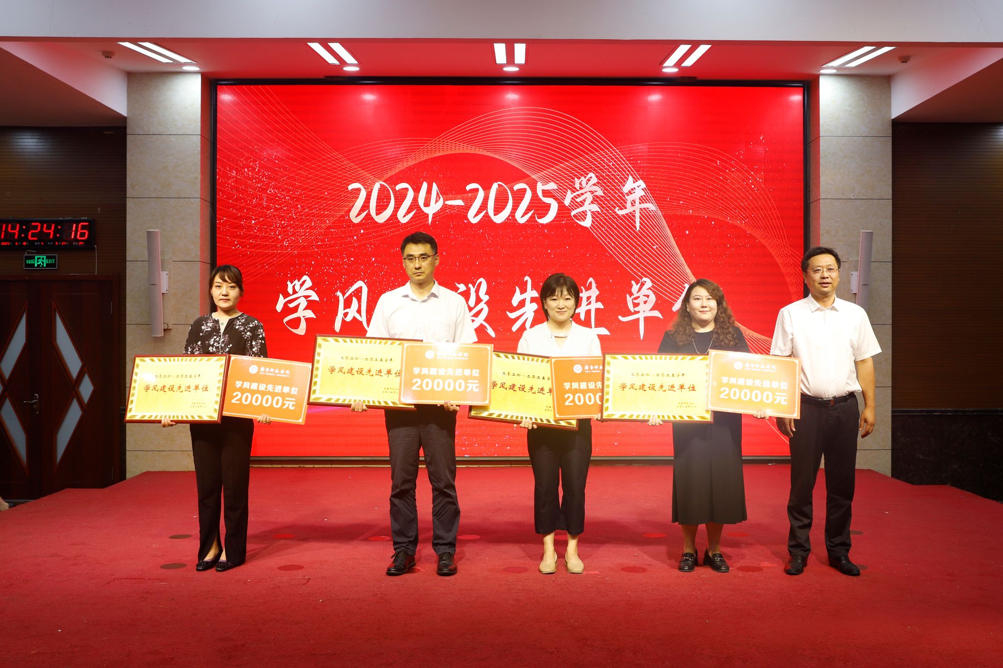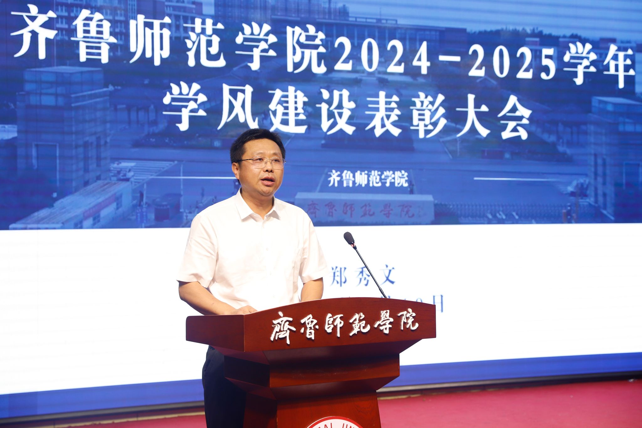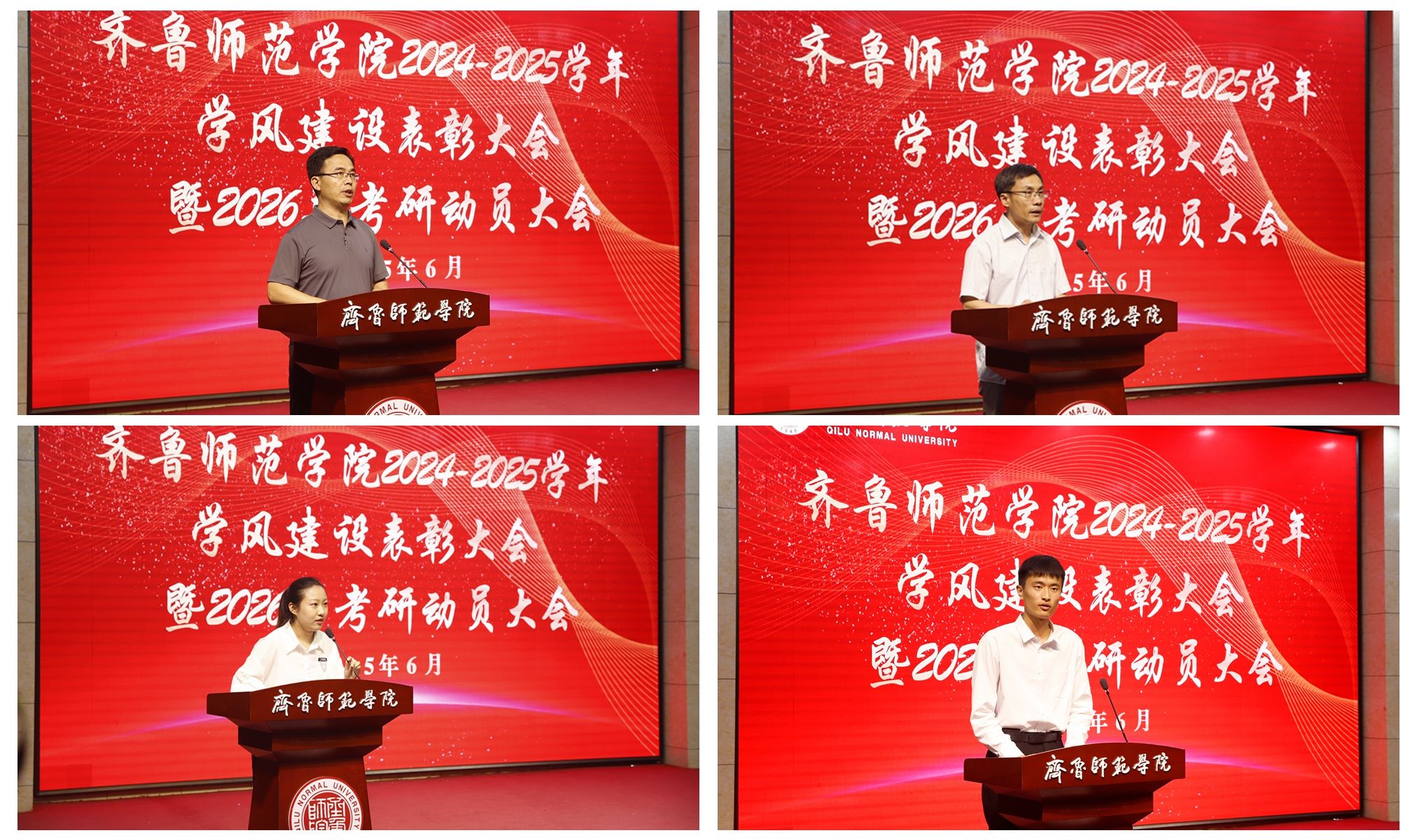 为落实立德树人根本任务,促进学校优良学风建设,激励和引领广大师生向优秀榜样学习,6月19日下午,学校在章丘校区第一学术报告厅举行2024-2025学年学风建设表彰大会暨2026年考研动员大会。学校党委副书记、校长郑秀文,党委副书记赵敏,党委委员、纪委书记、省监委驻BEAT365英国官网监察专员高明辉,党委委员、副校长孙正,党委委员、副校长孙洪兆,党委委员、宣传部部长孙磊出席活动。