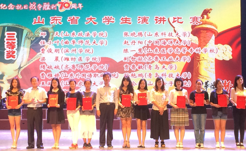 BEAT365官网学生在山东省大学生“中华魂,中国梦”纪念抗战胜利70周年演讲比赛中获佳绩