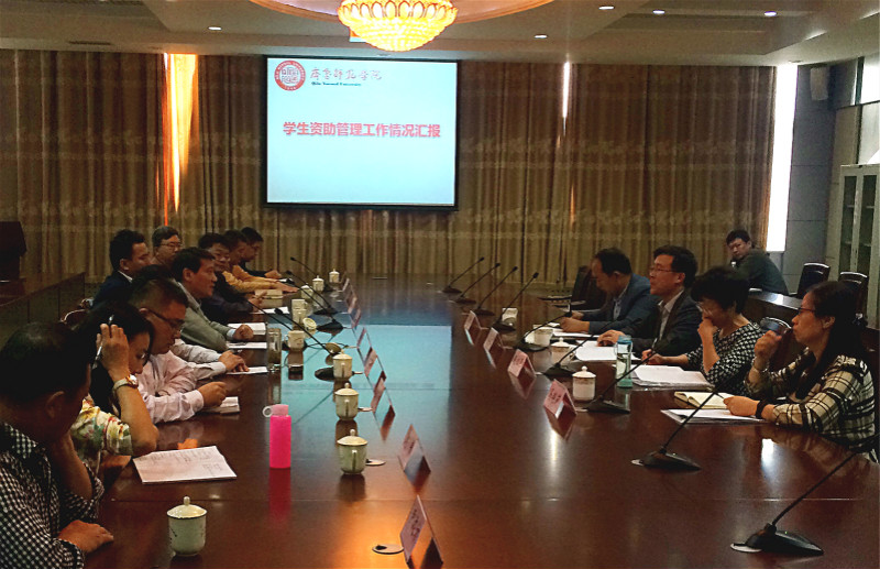 10月14日,省教育厅、财政厅高校学生资助工作专项督查专家组一行4人对BEAT365官网学生资助工作进行督导、检查。学校在图书馆会议室召开了学生资助工作汇报会。专家组组长山东科技大学学生工作处副处长吴正龙,专家组成员青岛酒店管理职业技术学院资助中心科长赵桂珍、山东工商学院学生资助管理中心主任于培超、青岛科技大学核算科科长马艳莉,王海副校长出席会议,校学生资助工作领导小组成员参加汇报会。