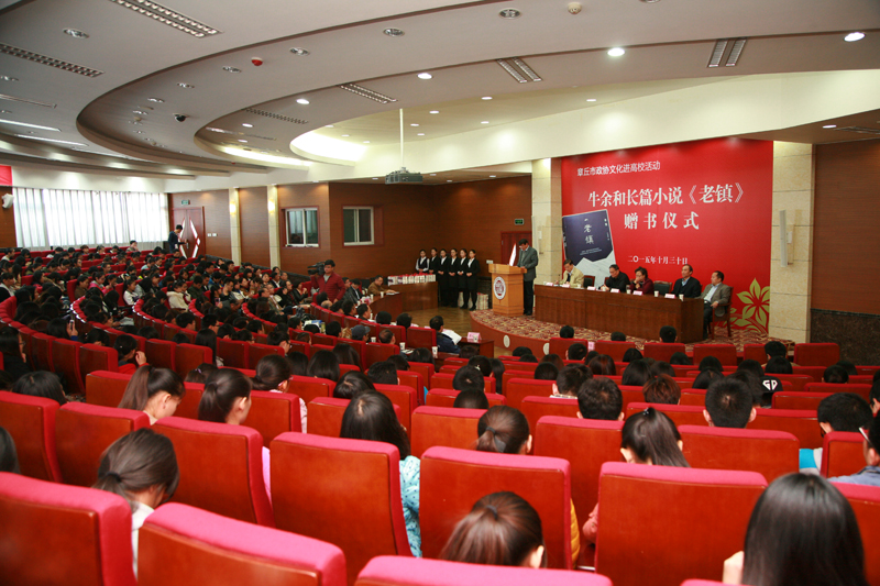 10月30日,由章丘市政协主办,市高教办、市作家协会联合组织的“章丘市政协文化进高校活动——牛余和长篇小说《老镇》赠书仪式”在BEAT365官网图书馆学术报告厅举行。山东省作协副主席、《山东文学》主编、山东师范大学博士生导师李掖平教授,BEAT365英国官网副校长王海、中国作协会员、济南市作协副主席、《老镇》作者牛余和及章丘市政协、市委宣传部、市高教办、市作协有关领导和代表,驻章丘12所高校图书馆负责人及学生代表共300多人参加了捐书仪式。