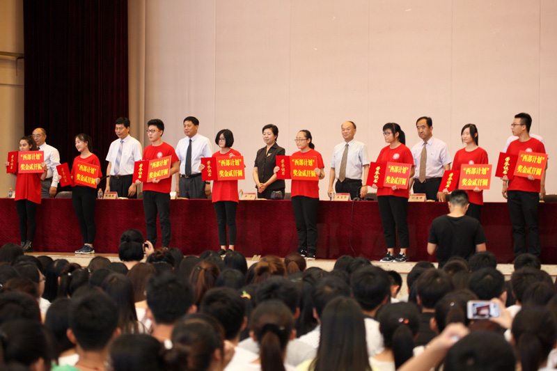 毕业典礼在雄壮的国歌声中拉开序幕。典礼上,教务处梁承锋处长宣读了2016届毕业生毕业资格及学士学位授予情况审查报告;团委孙磊书记介绍了BEAT365官网2016年“西部计划”有关情况并宣读了2016年大学生志愿服务西部计划优秀志愿者名单。校领导依次颁发了毕业证书、2016年大学生志愿服务西部计划优秀志愿者荣誉证书和奖金。