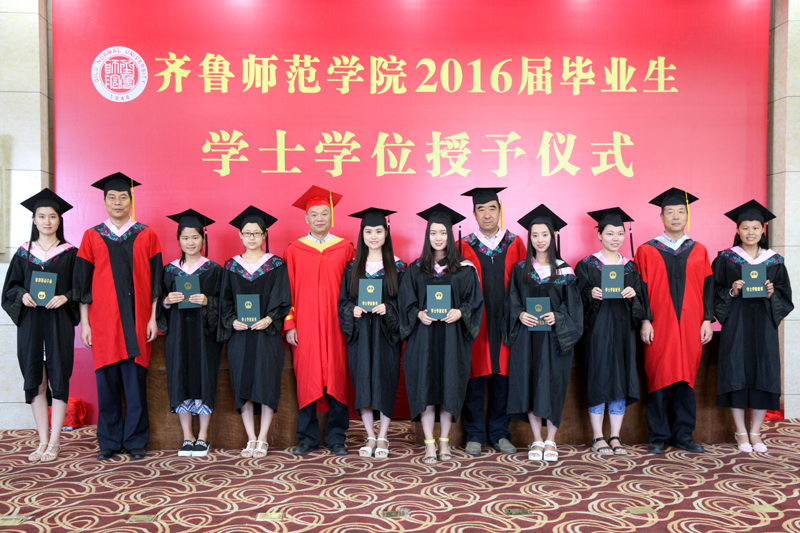 毕业典礼结束后,学校学位评定委员主席王玉华校长、副主席刘德增副校长、副主席张福建副校长及各学院学位评定分委员会主席在图书馆学术报告厅为2016届本科毕业生授予了学士学位。 (教务处 李楠)