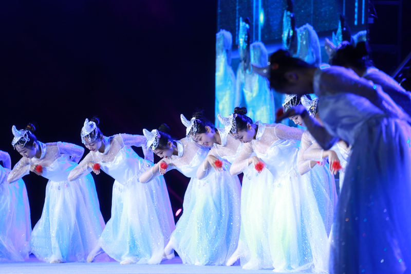 晚会伊始,播放了学生会新媒体中心制作的VCR,从一名学生的视角反映了丰富多彩的大学生活,展现了菁菁校园的美丽风采和学生们孜孜以求的学习精神。紧接着,山东省教育厅印务中心老干部合唱团表演的大合唱,展示出老教育工作者们饱满的精神风貌,为青年大学生们树立了榜样。音乐学院师生们表演的舞蹈《向天歌》、《兄弟》、《追梦》或优美飘逸,或感人泪下,无不引人入胜;教师教育学院爱心社的手语表演《小幸运》,饱含着青年志愿者们感恩、奉献的真情;军训学生代表演唱的歌曲《当兵就是那么帅》唱出了2016级新生对军训教官们的敬佩和感激;音乐学院学生们表演的古筝合奏《满乡情》婉转动听,曲风悠扬;体育学院的《健身气功》柔中带刚,器宇轩昂;校学生会礼仪队和国旗护卫队表演的礼仪时装秀,以及各个学院社团联合表演的节目《青春力量》,展现了师院学子的青春活力和朝气,以及努力争做“高在学识,富在内涵,美在心灵”的新一代大学生的美好愿望。