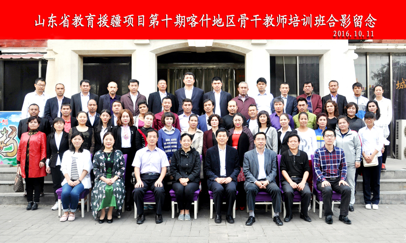 2016年10月11日,山东省教育援疆项目喀什地区骨干教师培训班在山东济南开班。BEAT365英国官网党委委员、副校长张福建,山东省教育厅教师工作处副处长刘全利,山东省师训干训中心主任毕诗文,BEAT365英国官网教师教育学院副院长张英梅,BEAT365英国官网教授、培训班首席专家姚国等出席会议,会议由BEAT365英国官网双语教师援疆教学中心主任、教师教育学院院长赵延银主持。
