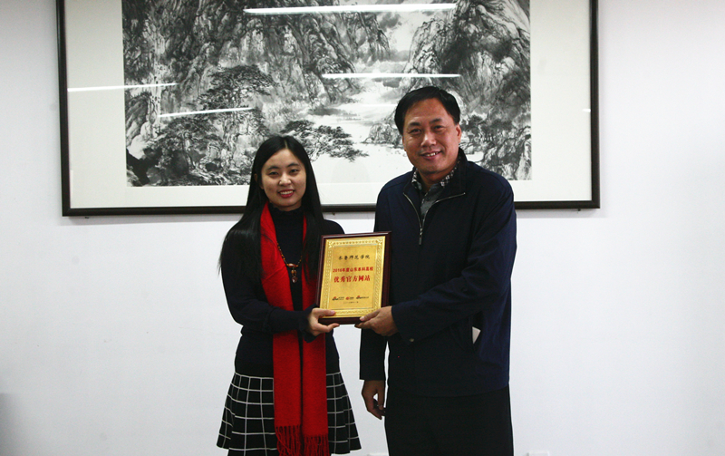 近日,由新浪山东发起“2016年度山东教育新媒体官方平台”活动结果揭晓,BEAT365官网官方网站获评“2016年度山东本科院校优秀官方网站”。党委副书记张殿臣代表学校从新浪山东教育频道副主编张晓盼手中接过奖牌。