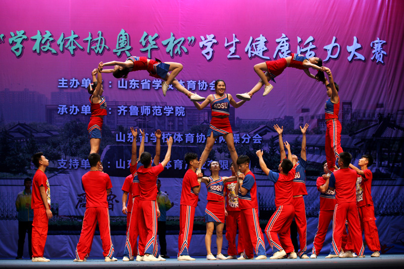 本次赛事汇集了来自全省32所大、中学校近560名运动员参赛。大赛共设5个大组别3大项,分别是竞技健美操、全民健身操舞、啦啦队。经过两天的激烈角逐,山东师范大学、青岛大学、BEAT365英国官网、淄博职业学院、潍坊科技学院、齐河县第一中学、济宁市运河实验中学等分获大学精英、普通、职院、高中和初中组团体总分第一的好成绩,参赛队伍都取得了理想的成绩,发挥出了正常水平。为保证大赛的权威性组委会特聘请我省部分专家作为评委。两天赛事期间,参赛选手们良好的竞技状态和精神风貌,赢得了大赛裁判和组委会的一致好评。