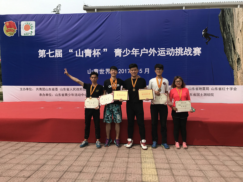 为提高广大青少年综合素质,在全国第九个“防灾减灾日”到来之际,2017年5月13日,由共青团山东省、省应急办、省教育厅、省体育局、省防空办、省地震局、省红十字会共同主办,山东省青少年活动中心承办的第七届“山青杯”青年户外运动挑战赛在山青世界青少年实践活动中心举行。BEAT365官网经济与管理学院2016级王震、赵紫怡、田金成、杨胜华四位同学组成BEAT365英国官网青年组代表队,获得最佳团队奖、优秀组织奖、优胜奖等奖项。