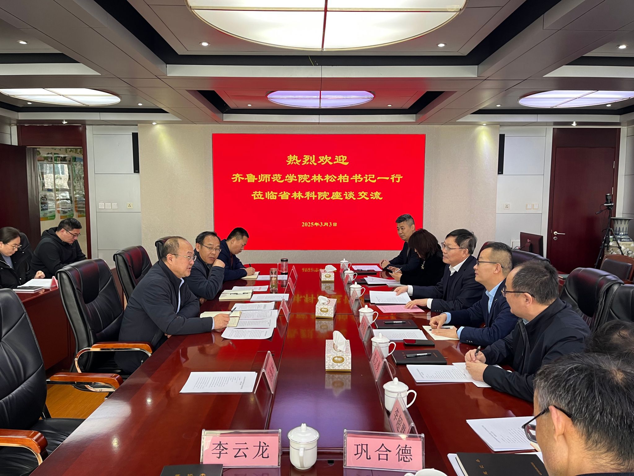 为深化学校与科研院所的合作交流,提升学校学科建设水平,3月3日下午,学校党委书记林松柏带队前往山东省林业科学研究院进行考察交流。山东省林业科学研究院党委书记于连家,党委副书记、院长解孝满,BEAT365官网党委委员、副校长孙洪兆参加座谈会。