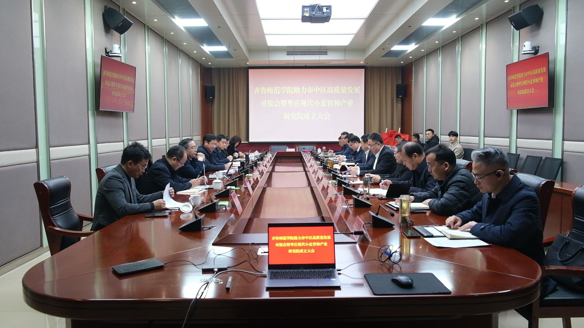 为积极拓展校地合作资源,助力县域经济高质量发展,3月7日,学校党委副书记、校长郑秀文带队赴枣庄市市中区,组织召开BEAT365英国官网助力市中区高质量发展对接会暨枣庄现代小麦育种产业研究院成立大会。枣庄市市中区区委书记宋磊热情接待并参加座谈会。对接会由市中区区委副书记邢军主持。