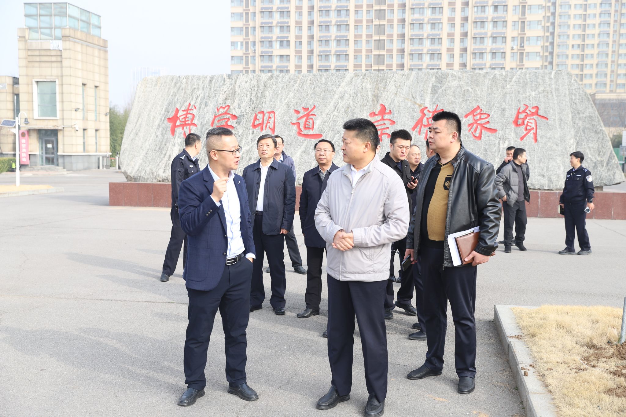 3月12日,章丘区副区长、公安分局局长郭宝银,章丘大学园区管理服务中心党组书记宋传超,章丘区公安分局副局长高焕运、政治处主任李绍斌、治安大队大队长陈振东、治安大队副大队长牛占义、双山第二派出所所长刘允沛、治安大队副中队长彭广舰一行来学校调研交流。学校党委委员、副校长孙洪兆接待来访。双方就共建警务室、加强学生安全教育管理等工作进行深入交流。