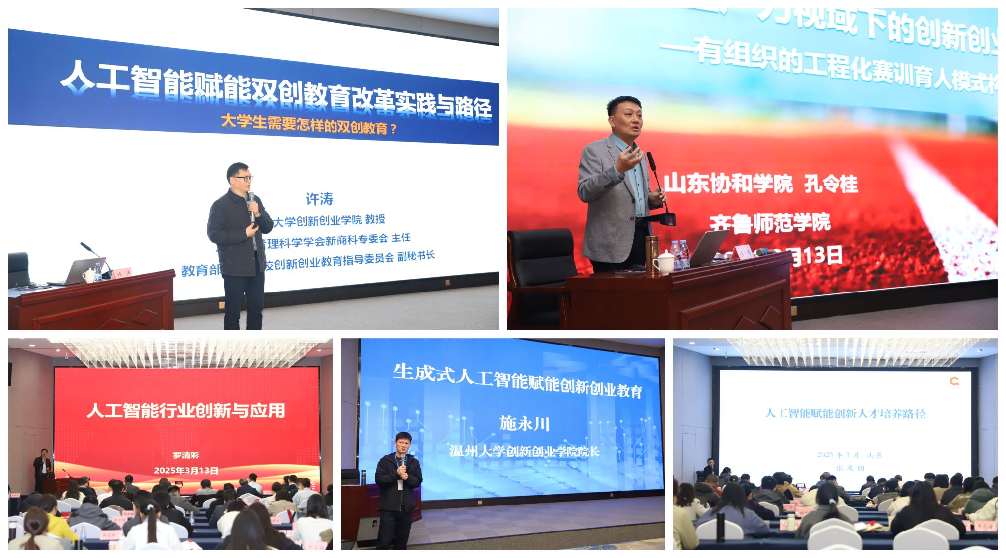培训期间,多位专家学者围绕人工智能与创新创业教育的深度融合展开专题报告。同济大学创新创业教育研究中心主任许涛教授讲授了人工智能赋能创新创业教育改革实践与路径,为参会教师提供了前沿的理论指导;山东协和学院副校长孔令桂教授分享了新质生产力下高校创新创业教育改革路径与实践研究;浪潮工业互联网副总经理罗清彩介绍了人工智能的行业创新与应用;温州大学创新创业学院院长施永川教授聚焦生成式人工智能赋能创新创业教育;重庆惠风合创科技有限公司总经理张庆朋从人工智能赋能创新人才培养路径方面探讨了人工智能在创新人才培养和产业创新中的重要作用。这些专家报告为参会教师提供了丰富的理论知识和实践指导。