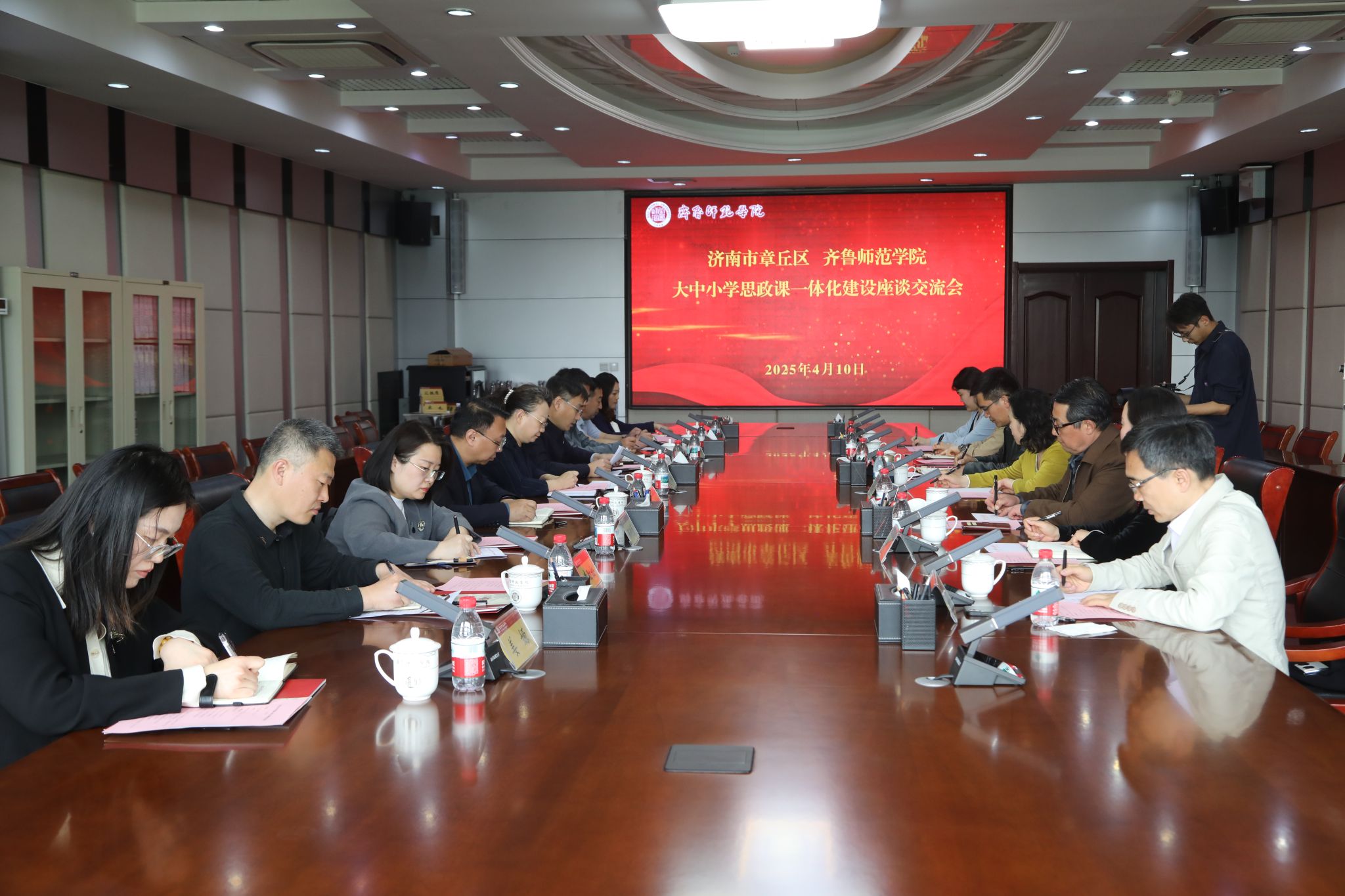 4月10日上午,济南市章丘区委常委、宣传部部长、区委教育工委书记赵琳一行9人来校,就大中小学思政课一体化建设调研交流。学校党委副书记赵敏出席座谈会。章丘区教体局、章丘大学园区管理服务中心、章丘中学、东山小学有关负责人,马克思主义学院相关负责人参加。