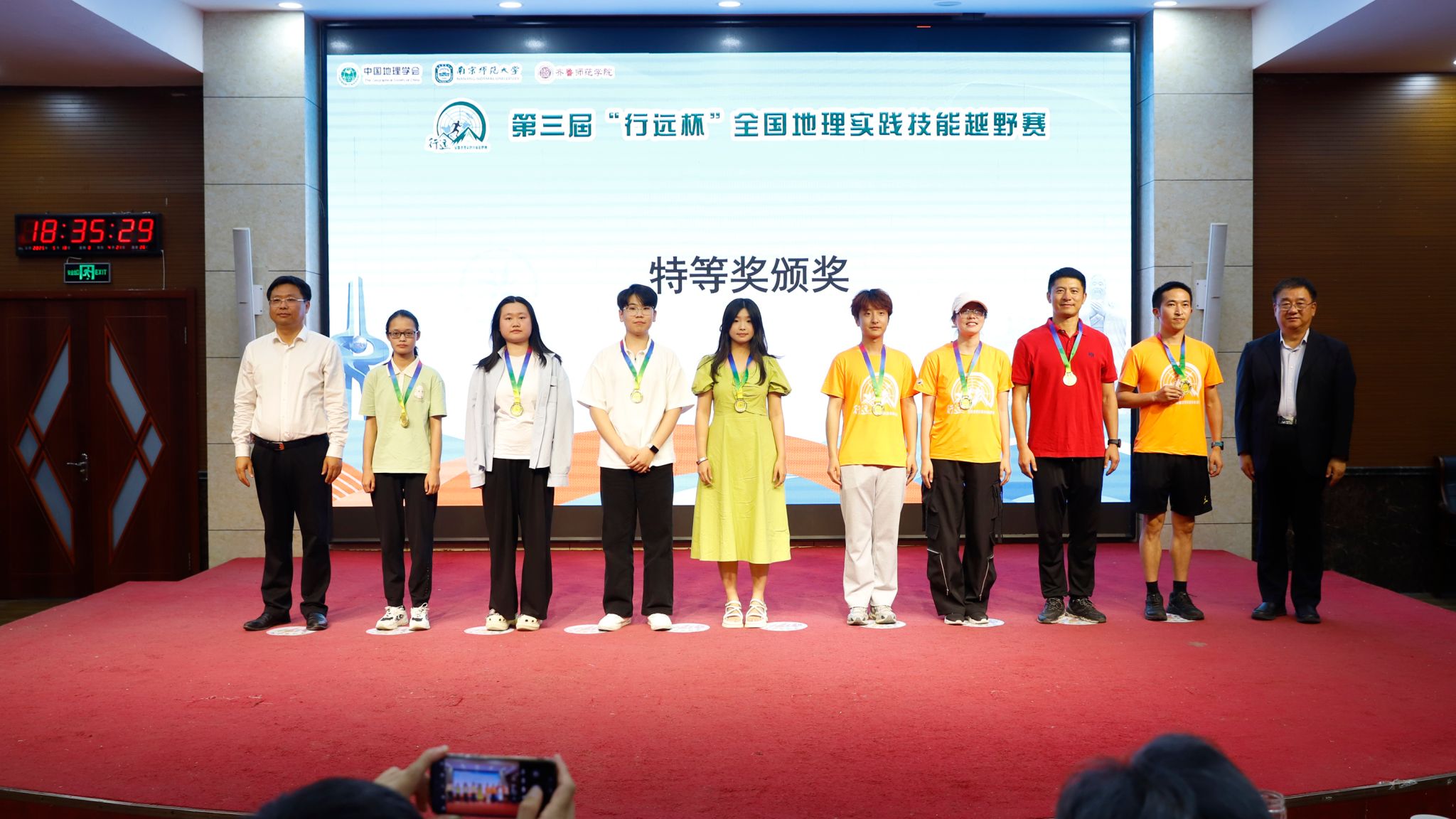汤国安、郑秀文为获得特等奖的选手颁奖;南京师范大学地理科学学院党委书记苏锦、山东地理学会理事长王成新为获得一等奖的选手颁奖;南京师范大学地理科学学院教授赵媛、济南地理学会理事长程菊为获得二等奖的选手颁奖;南京师范大学地理科学学院副院长汪涛、BEAT365英国官网地理与旅游学院院长王敏为获得三等奖的选手颁奖。最后,组委会向下一届赛事承办单位北京师范大学珠海校区授旗。