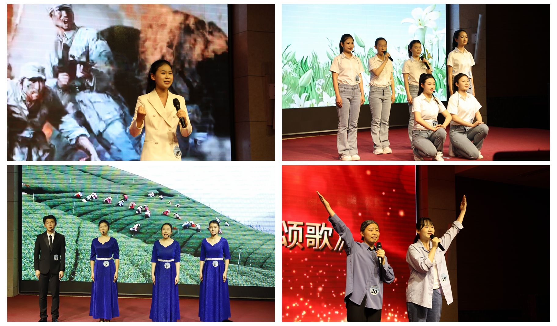 本次校赛经过初赛、复赛的层层选拔,从120余个参赛作品选出12个优秀作品进入决赛。决赛现场,选手们用诵读将语言意境与情感表达进行完美融合,以独诵、齐诵、吟唱等多种表现形式,诠释经典,传递力量。参赛选手们或是以如歌如泣的语言描绘扶贫干部的牺牲精神和共产党人的伟大情怀,或是用深情朗诵致敬革命先烈,字里行间流淌出对英雄的缅怀与敬仰……深情的演绎将经典作品中的意境表达得淋漓尽致,为观众带来了一场震撼心灵的视听盛宴,赢得现场阵阵掌声。