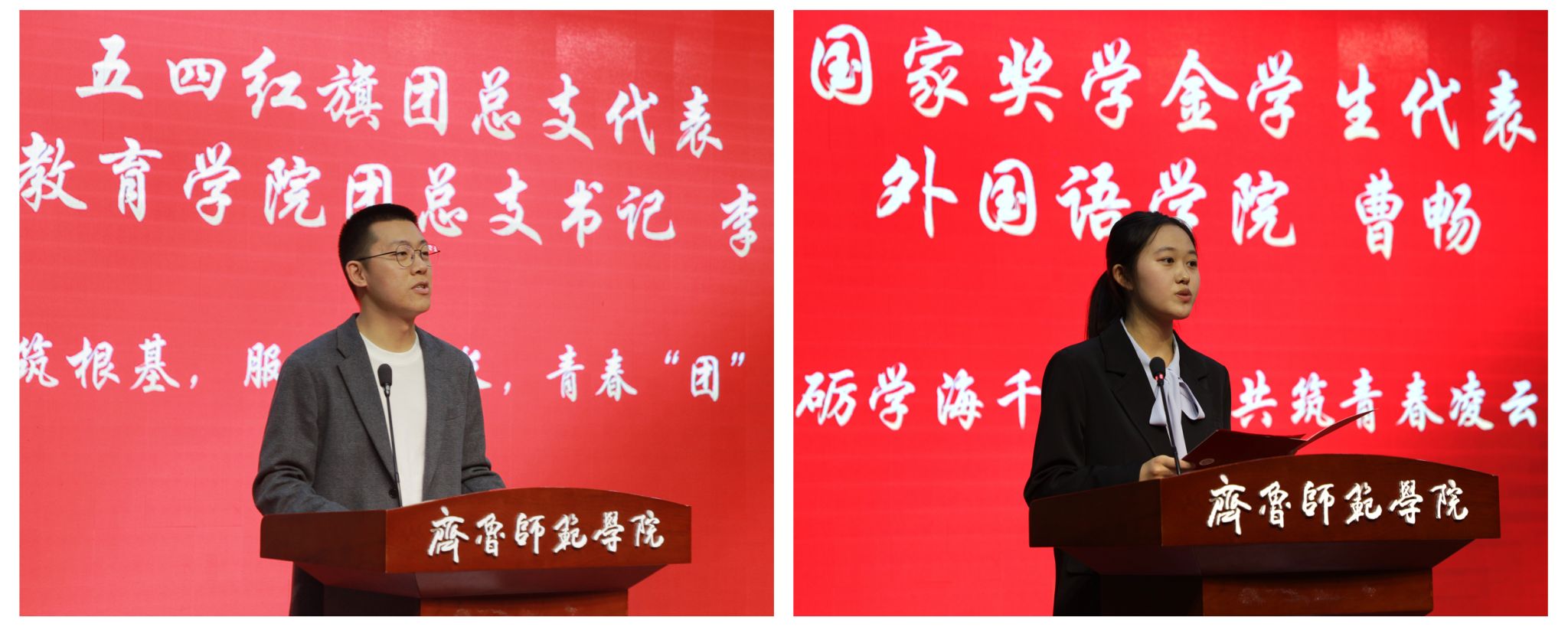 教师教育学院团总支书记李炜琛作为“五四红旗团总支”代表作典型发言,外国语学院学生曹畅作为“国家奖学金”代表作思想汇报。
