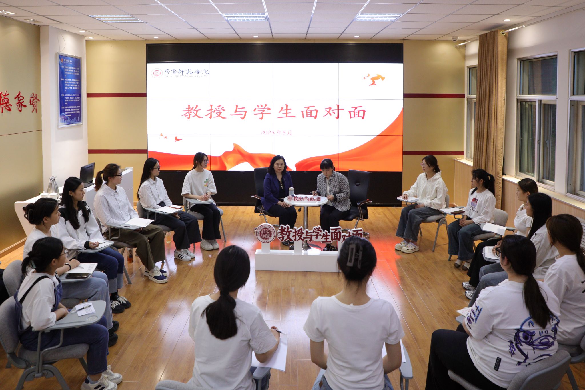 5月6日晚,学校在章丘校区大学生就业创业赋能中心举办第三期“教授与学生面对面”活动。学校党委副书记赵敏担任主讲嘉宾,以“传承中华优秀传统文化,赋能学生成长成才”为主题,与学生代表共同探讨中华优秀传统文化的丰厚历史底蕴与现代转型发展。学生工作部(处)部长李玮主持活动。