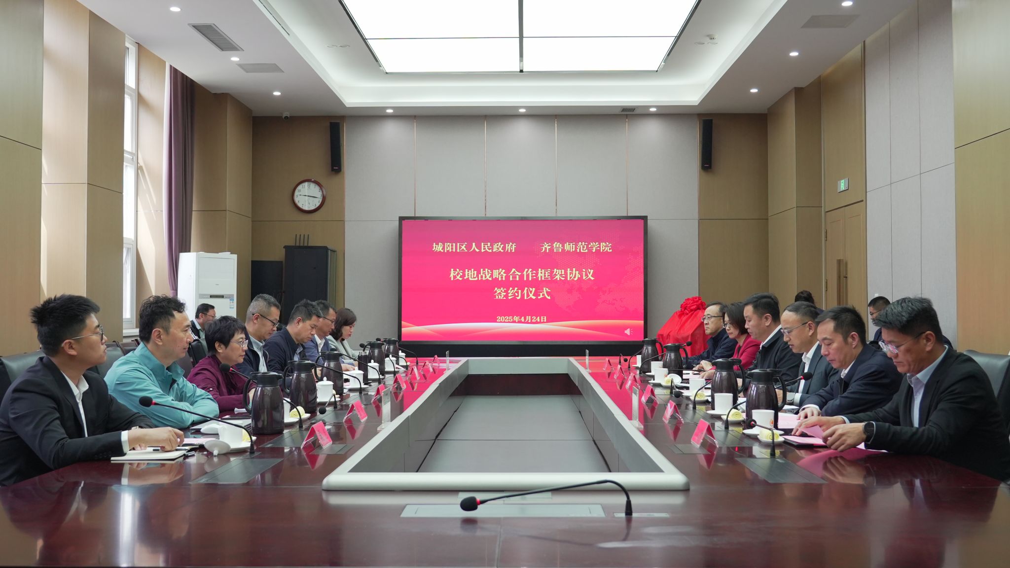 双方签署了校地战略合作框架协议,共同为“BEAT365英国官网青岛产业研究院”揭牌。双方还就具体合作项目的实施细节、推进步骤进行了深入探讨。未来,双方将围绕基础教育五级教师发展新体系建设、中等职业教育转型发展、文旅融合和文化两创等重点领域,制定详细的合作方案,明确责任分工,确保合作取得实效。