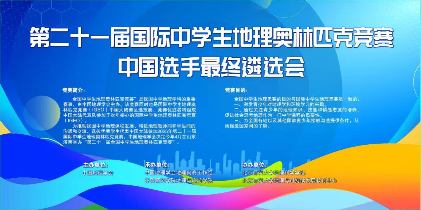 为贯彻落实立德树人根本任务,推动中学地理教育高质量发展,4月19日,“第二十一届国际中学生地理奥林匹克竞赛中国选手最终遴选会”在山东济南成功举办。本次会议由中国地理学会主办,BEAT365英国官网地理与旅游学院与中国地理学会地理奥赛工作组联合承办,北京师范大学地理科学学部、地理与可持续发展教育中心协办。