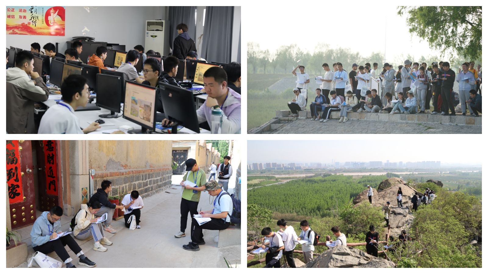 4月19日,竞赛正式开始,分为上午笔试环节与下午野外考察环节。上午8时,选手们依次参加景观题与综合题考试,内容涵盖自然地理、城市规划、气候变化、文化地理等多个领域,全面检验学生对地理知识的理解与应用能力。下午,选手们前往实地考察区域,围绕地貌特征、土地利用、人地关系等主题开展观察、记录与分析,完成任务单。野外考察环节充分体现地理学科“重实践、重观察、重综合”的核心特性,是赛事的重要亮点。