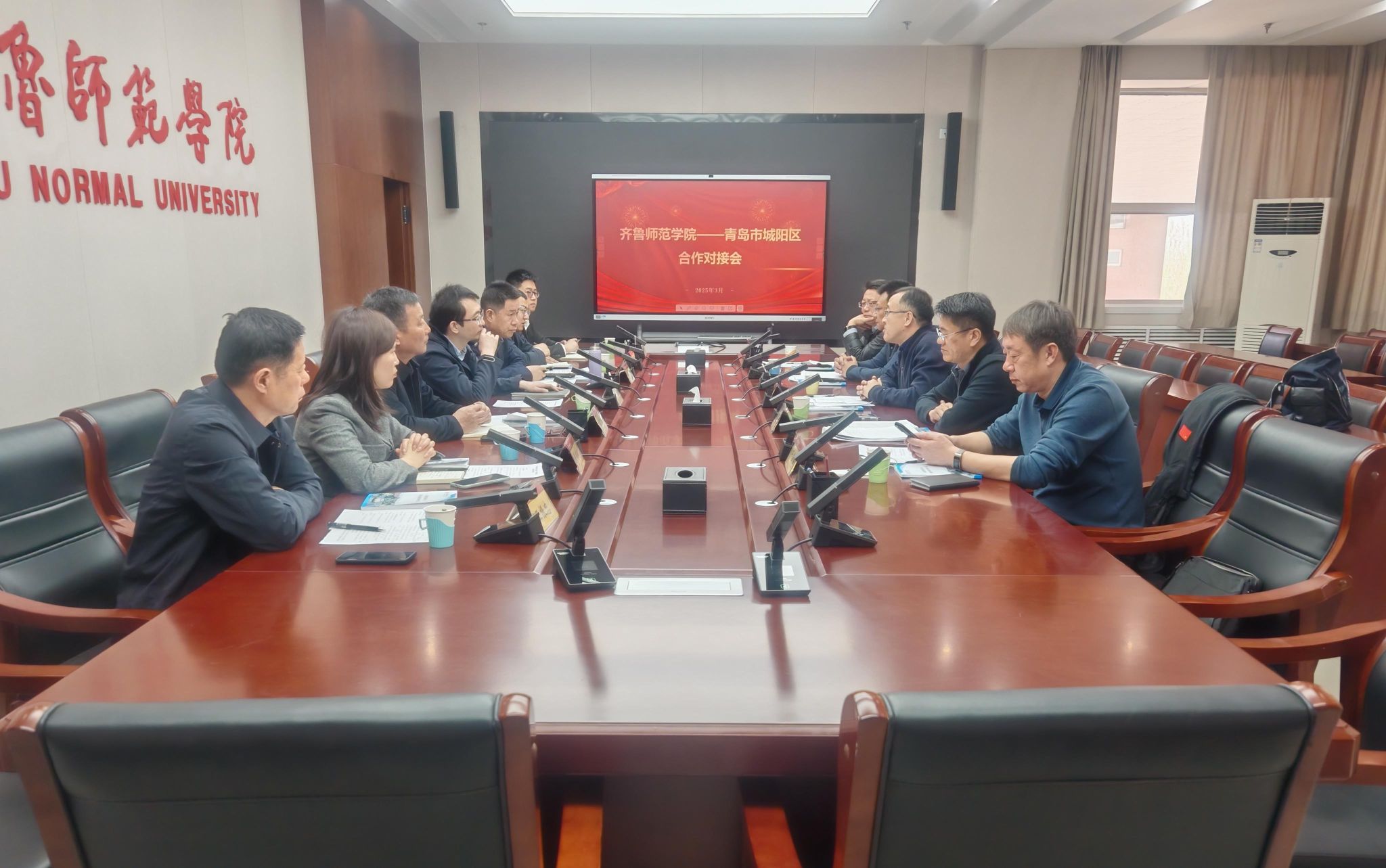 徐连吉介绍了城阳区教育的整体布局、发展现状以及面临的机遇与挑战,表达了城阳区希望借助BEAT365英国官网的专业资源和人才优势,提升教育质量、优化教育结构的迫切愿望。王建国介绍了城阳区职业教育的特色与发展方向,提出在专业共建、产教融合、实训基地建设等方面与学校开展深度合作的设想。棘洪滩街道教委主任张建波、河套街道教委办主任于海鹏、红岛街道教委主任牟兵则分别结合各自街道的教育实际情况,分享了基层教育发展中的经验与困惑,表达了在师资培训、课程建设、学生综合素质提升等方面的合作诉求。