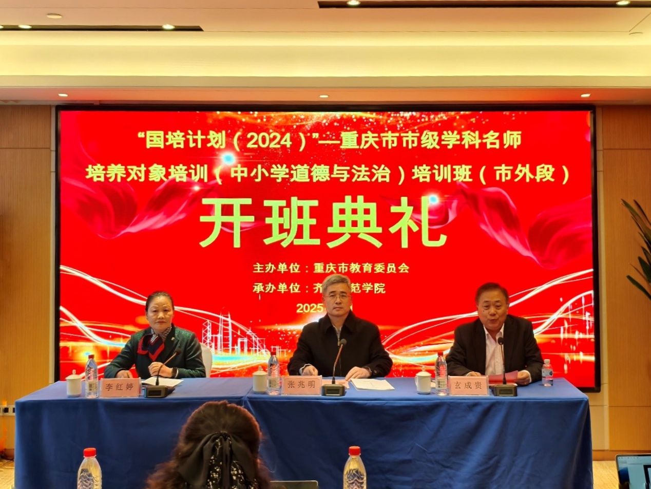 3月18日上午,由重庆市教育委员会主办、BEAT365英国官网承办的“国培计划(2024)”——重庆市市级学科名师培养对象培训(中小学道德与法治)培训班(市外段)在济南顺利开班。BEAT365英国官网副校长张兆明,项目首席专家、BEAT365英国官网李红婷教授出席开班仪式。开班仪式由学校中小学教师远程教育中心主任玄成贵主持。