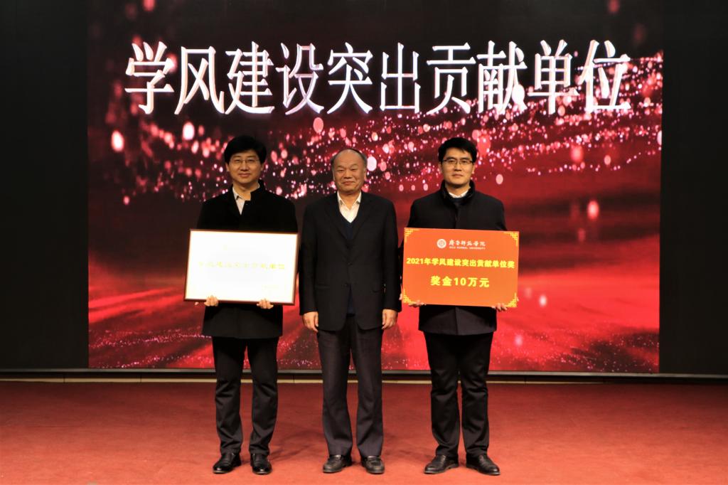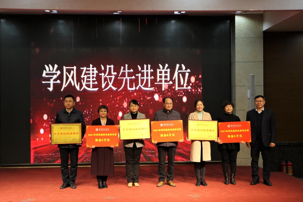 王玉华在讲话中充分肯定近年来学校学风建设取得的成效,对获奖个人和集体表示祝贺,对全体师生员工的辛勤付出表达感谢。他指出,学校每年举办学风建设总结表彰暨推进大会,是不断集思广益、提高认识,齐抓共管、标本兼治,鼓劲动员、深入推进的过程,下大力气抓学风建设,能够引导学生在学习中升华气质,以学养人、治心养性,不断提高学校人才培养质量和办学特色水平。