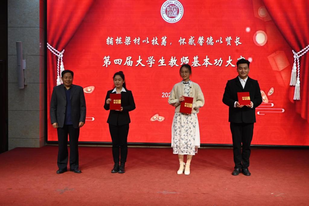 经过激烈的角逐,最终教师教育学院王钧垚、外国语学院王晓铮、美术学院陈月瑶荣获一等奖;教师教育学院师晴、王鑫钰、化学与化工学院朱孜涵、数学学院潘瑞、音乐学院李颖钰获得二等奖;经济与管理学院刘梦昕、生命科学学院齐小斐、物理与电子工程学院冯雨欣、体育学院张昆、信息科学与电子工程学院胡馨月、文学院荣新秀、历史文化学院张玉娇、马克思主义学院高玉芳获得三等奖。