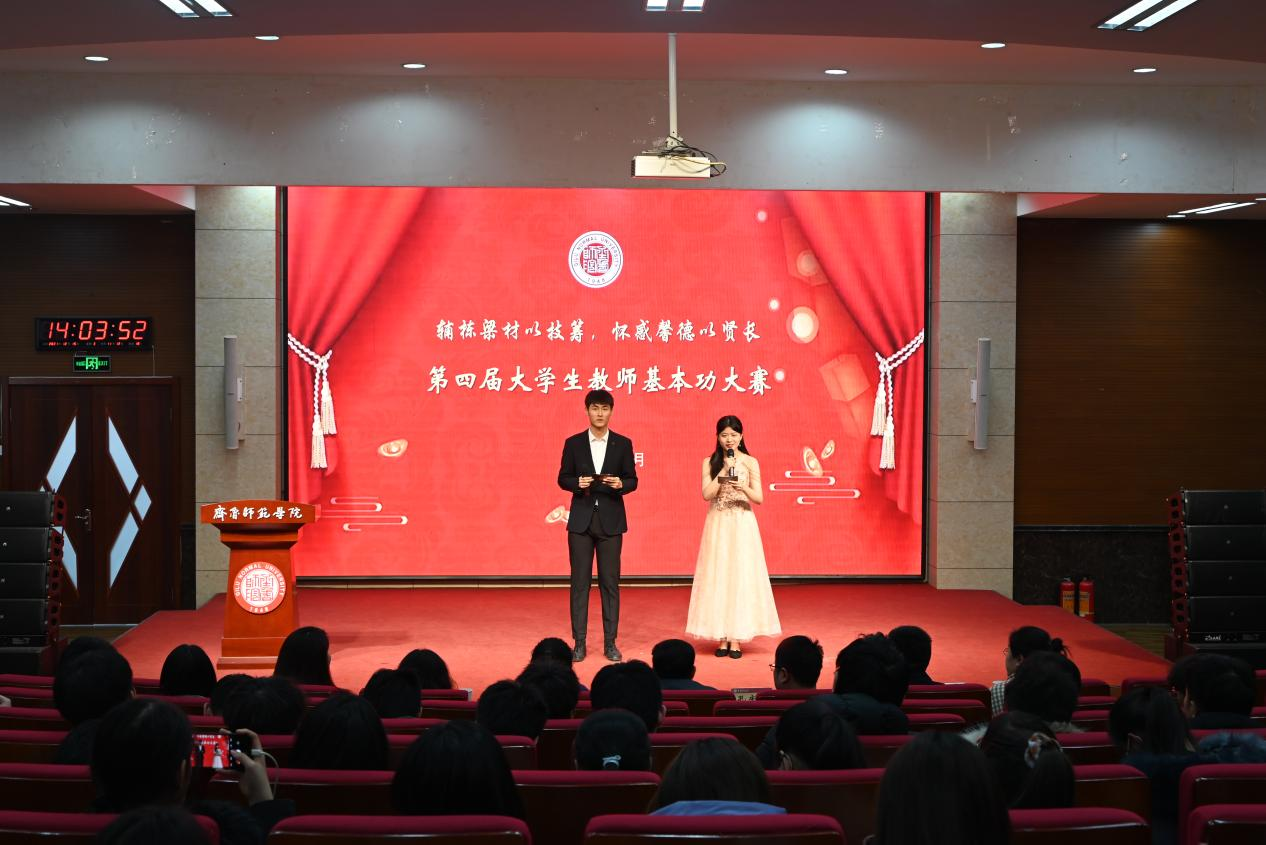 经过前期初赛、复赛的选拔和角逐,最终16位选手脱颖而出,挺进总决赛。在首轮技能展示环节,参赛选手们依次上台进行模拟授课,他们从容自信、淡定大方,以流利标准的普通话,声情并茂的讲课形式,生动有趣的课程内容,尽情展示着师院学子扎实的专业素养和良好的教学技能。在随机提问环节,选手们亦是不落锋芒,沉着应对。彰显着师院学子们勇于追梦的刚毅品质和当代青年应有的时代担当。
