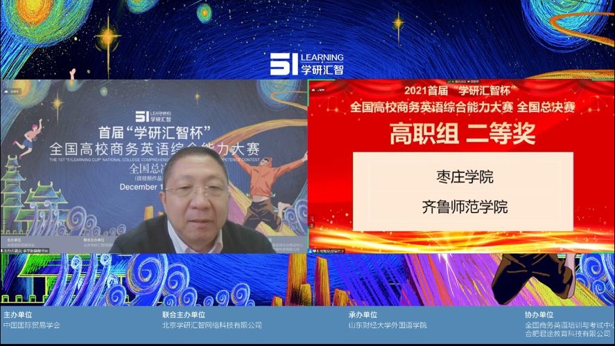 2021年首届“学研汇智杯”全国高校商务英语综合能力大赛全国总决赛成功举办,本次比赛由中国国际贸易协会、北京学研汇智网络科技有限公司主办,由全国商务英语培训与考试中心、山东财经大学外国语学院承办。
