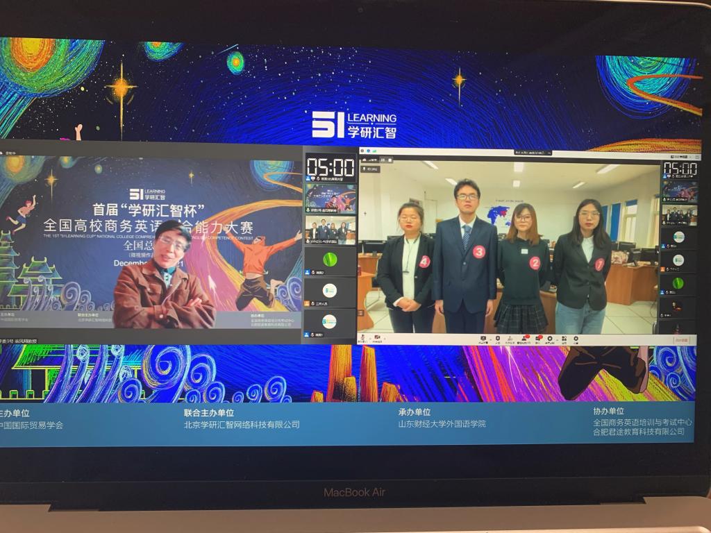 12月11日,2021年首届“学研汇智杯”全国高校商务英语综合能力大赛全国总决赛圆满落幕。经过层层选拔,由李祺、潘文瑄、王雅萱、王文琦四名同学组成的外国语学院代表队荣获2021年首届“学研汇智杯”全国高校商务英语综合能力大赛全国总决赛高职组二等奖,其中潘文瑄同学获得了“最佳表演者”荣誉称号。外国语学院叶明晶、何璇老师分别进行现场指导和线上指导。