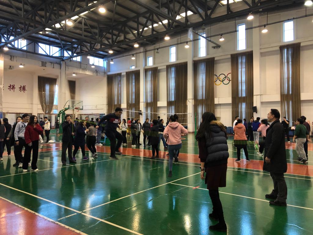 本次比赛,设跳长绳、跳绳接力、踢毽子、托球跑、定点投篮、齐心协力等6个集体项目,全校16个部门工会约300余名教职工参加。比赛由校党委委员、党委统战部部长宋新刚主持。