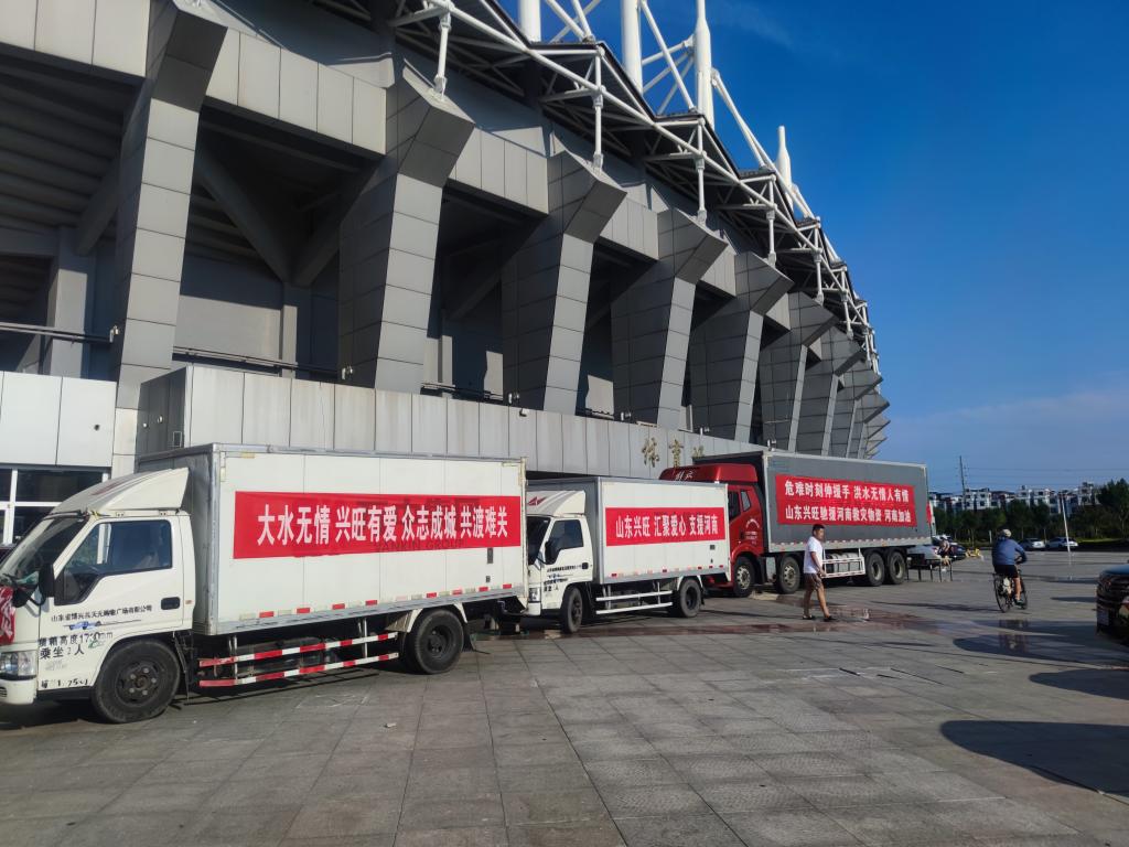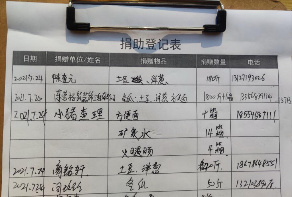 陈奎元,土豆、洋葱180斤;小猪查理,方便面10箱;标筑装饰,南瓜、土豆、洋葱1800斤……7月24日,俱乐部成员和周边的居民慷慨解囊,表达爱心,不足半天的功夫,就收到2万余斤蔬菜及其它生活物资。当天下午,他们还订购了7万斤蔬菜一并捐赠河南。装车完毕之后,三辆卡车立即启程直奔郑州,作为实习教练的陈奎元被安排负责留守值班保障工作。