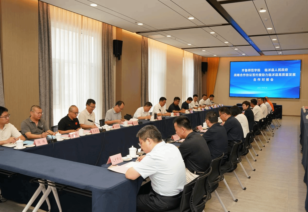 临沭县委人才发展服务中心、教体局、人社局、科技局、工信局、农业农村局、文旅局、金丰公社、树根数字科技等单位负责人,学校文学与历史文化学院、生命科学学院、信息科学与工程学院、基础教育服务中心负责人,教师教育学院、地理与旅游学院、生命科学学院相关专家教授参加会议。