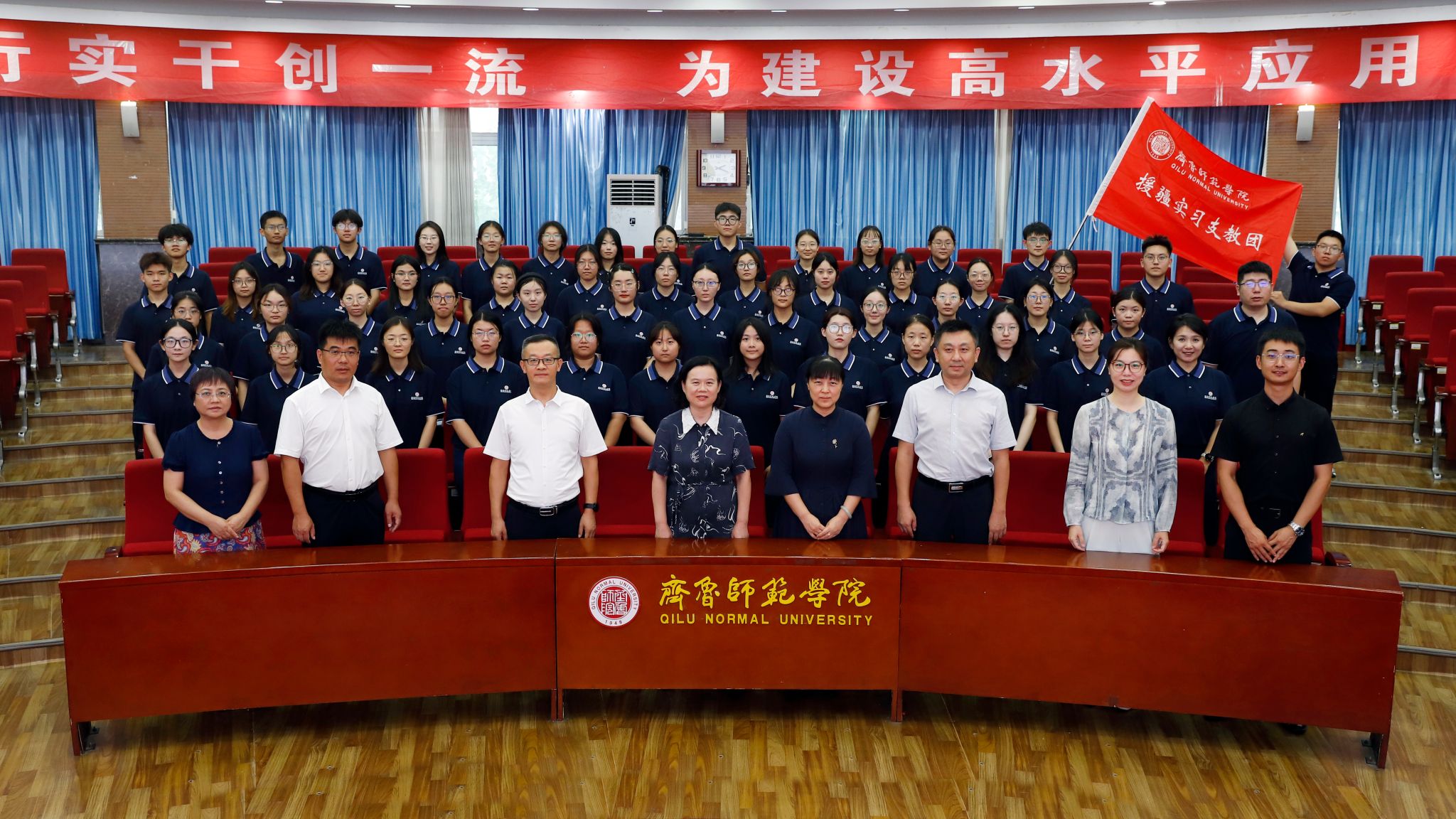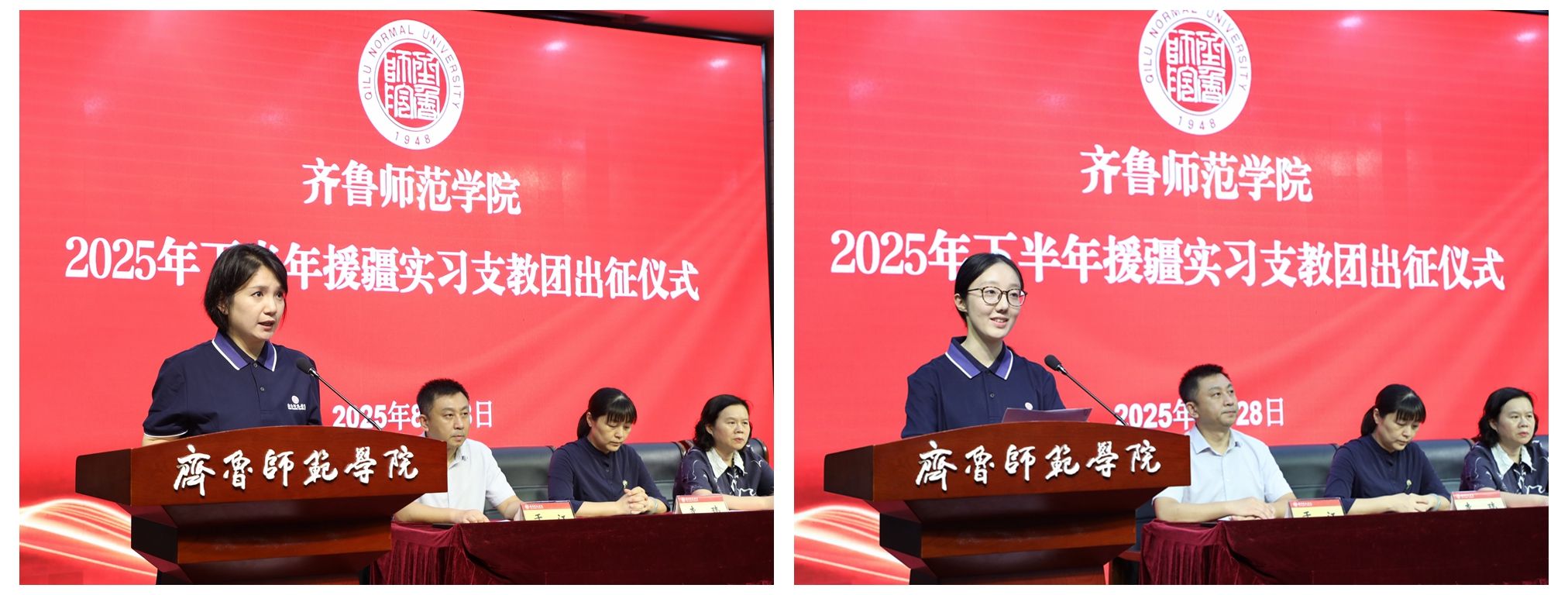 赵敏代表学校党委向即将奔赴新疆开启支教征程的全体师生致以热烈祝贺与崇高敬意。她指出,援疆实习支教既是学校积极响应国家战略、促进民族团结的有力行动,也是学校落实立德树人根本任务、深化实践育人改革、提升人才培养质量的重要举措。一直以来,学校高度重视教育援疆工作,前七批援疆实习支教团在新疆热土深耕教学、传递温暖,涌现出大批奉献教育的优秀典型,赢得当地教育部门与师生的高度认可,为鲁疆两地教育协作与文化交流写下生动篇章。在第八批援疆实习支教团启程之际,赵敏向大家提出三点希望:一是坚守政治初心,严守纪律底线;二是发挥专业优势,深耕教育一线;三是凝聚团队力量,谱写支教新篇。希望全体援疆实习支教师生铭记学校嘱托,勇担责任使命,珍惜这次难得的磨砺机会,书写教育援疆的齐鲁师院崭新篇章!并祝愿支教团圆满完成援疆实习支教任务,期待平安凯旋。
