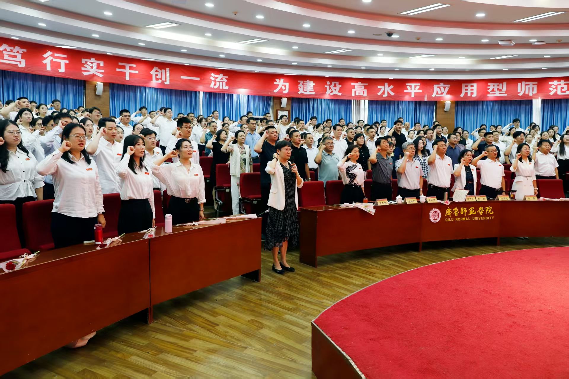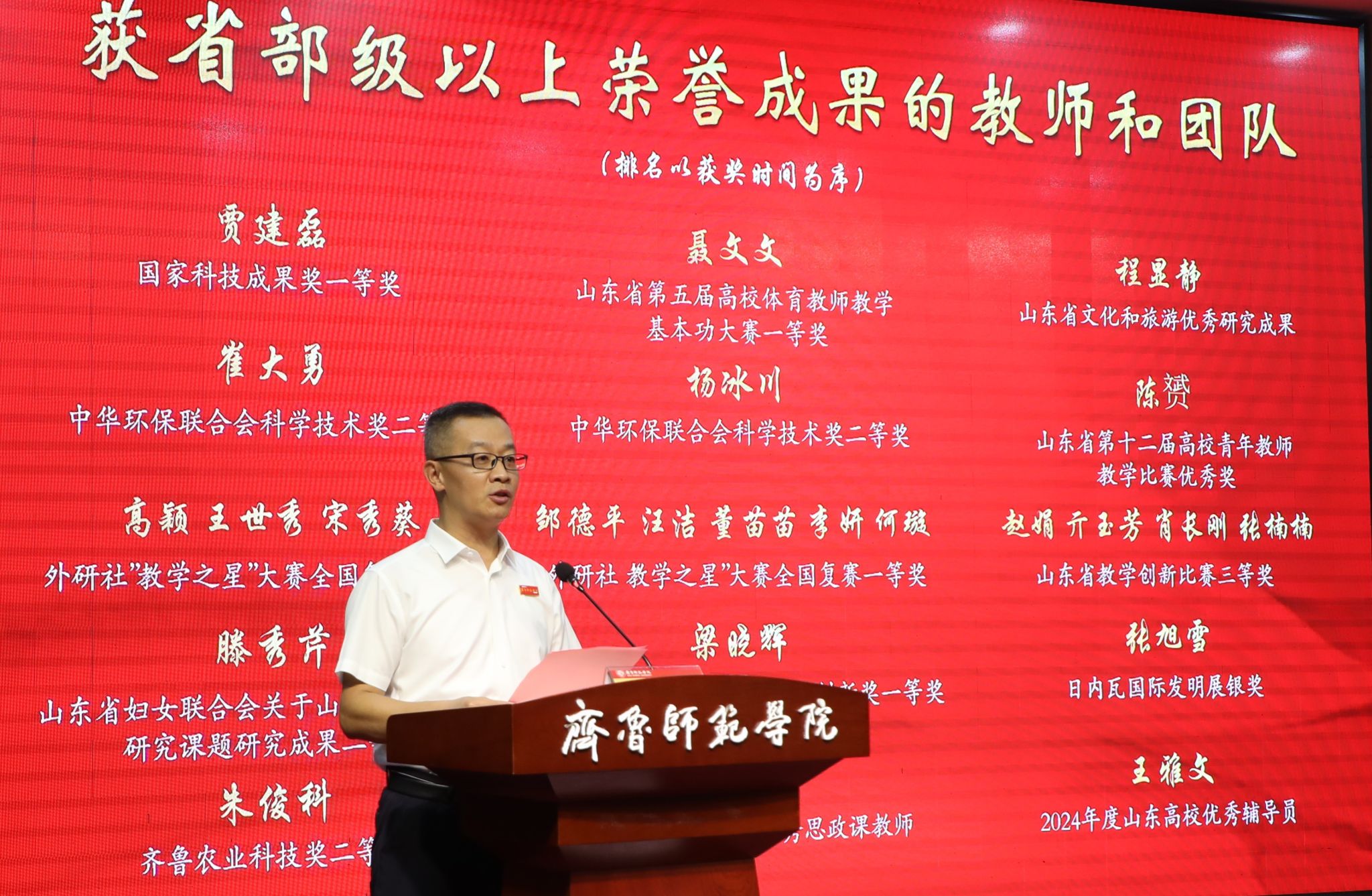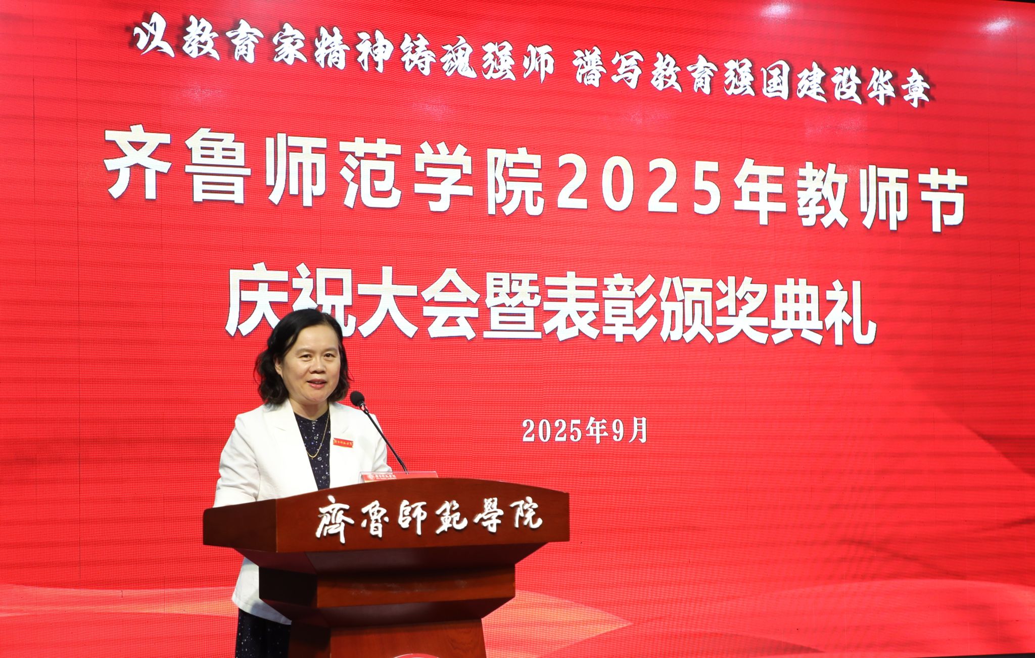 郑秀文在讲话中总结回顾了近年来在全体教职员工共同努力下,学校取得的突出成就,充分肯定了大家在学校各项事业发展中做出的积极贡献。围绕“弘扬和践行教育家精神,加强教师队伍建设,加快学校高质量发展”主题,郑秀文向老师们提出三点希望和要求:一是坚守初心使命,在强国新征程中践行“家国至上,为人师表”。要有高度的职业荣誉感和历史使命感,坚持把教育作为终身事业,在成就学生的过程中成就自己。二是坚持奋发有为,在个人成长上做到“胸怀大教育,夯实小细节。要有当“大先生”的志向,以“大先生”的标准要求自己,传播知识、传播思想、传播真理,塑造灵魂、塑造生命、塑造新人。三是坚定实干担当,在学校事业发展中展现非凡的人生价值。要心往一处想、劲往一处使,方向一致、步调一致,激发学校发展的新生机、新活力,推动学校高质量发展,走出一条齐鲁师院人的康庄大道;在教育家精神的引领下,牢记为党育人、为国育才的初心使命,全面落实立德树人根本任务,踔厉奋发、砥砺奋进,共同书写学校高质量发展新篇章。