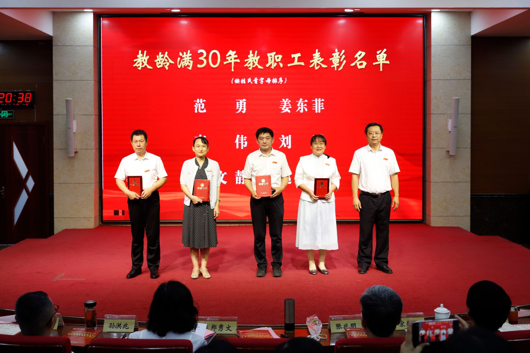 学校各部门、单位负责人,二级学院党委书记、教师代表、院长、新入职教师和学生代表参加典礼,共同见证属于教育工作者的荣光。