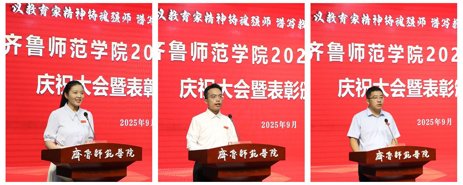 外国语学院2022级英语(师范类)专业学生、第十三届山东省师范类高校学生从业技能大赛初中组英语学科一等奖第一名获得者殷菲作为学生代表发言,她深情表示,正是老师们在三尺讲台书写着"学高为师,身正为范"的永恒诗篇,才在学生心中播撒下"成为好老师"的种子。她感谢老师的谆谆教诲,感恩母校给予的成长平台,并向全体师院教师献上最真挚的节日祝福。