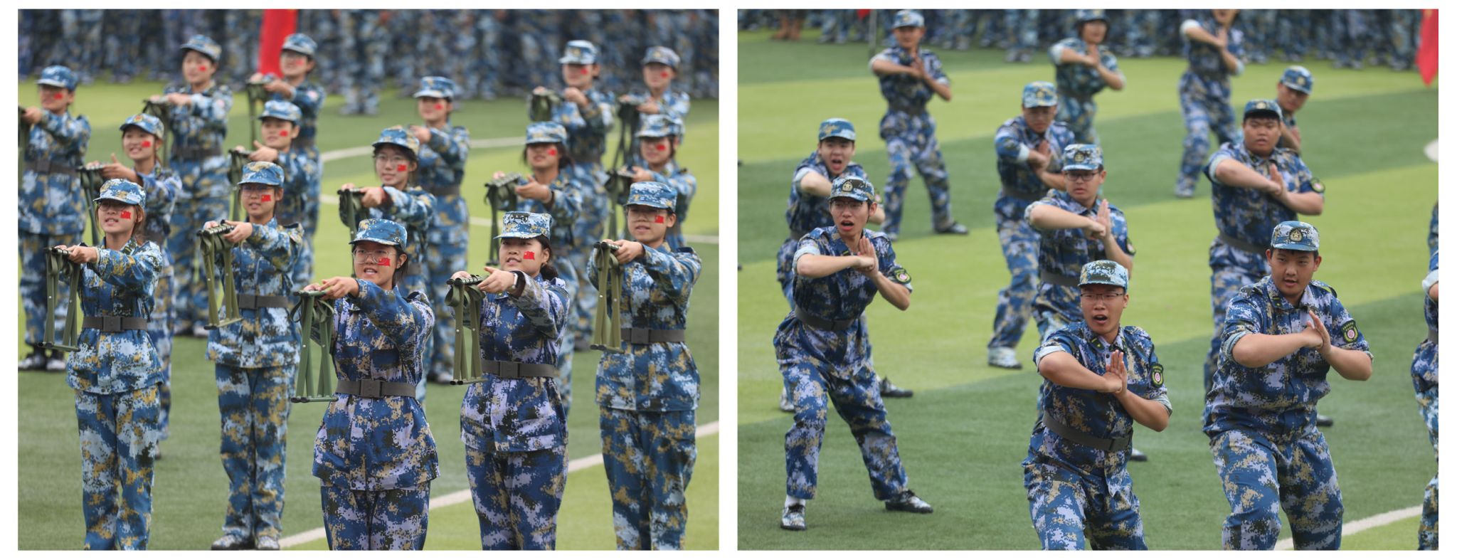 汇报科目展示环节,养成方队、刺杀操、擒敌拳、综合战术及战场救护等科目依次进行,参训学生动作规范、斗志昂扬,出色完成了各项汇报任务。