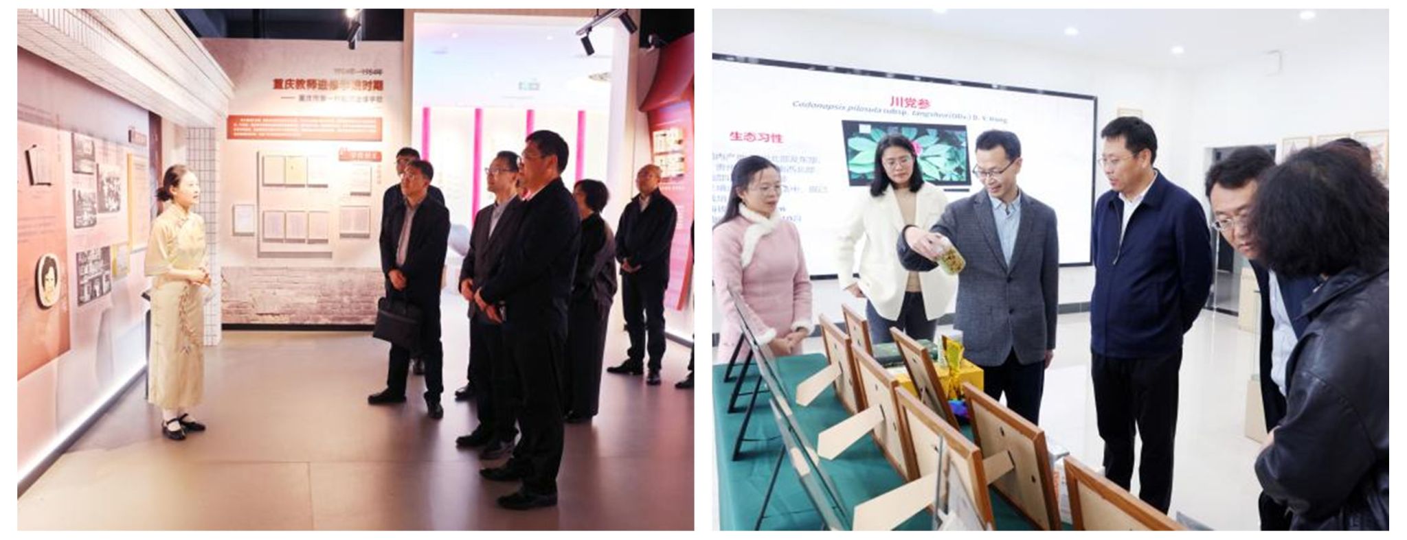 考察组一行抵达重庆第二师范学院南山校区校史馆,在相关负责人的引导下,详细听取了该校办学历程、学科演进、特色发展等方面的情况介绍,深入了解其在不同发展阶段的办学理念与建设成就,考察组对该校深厚的办学底蕴和鲜明的办学特色给予高度评价。