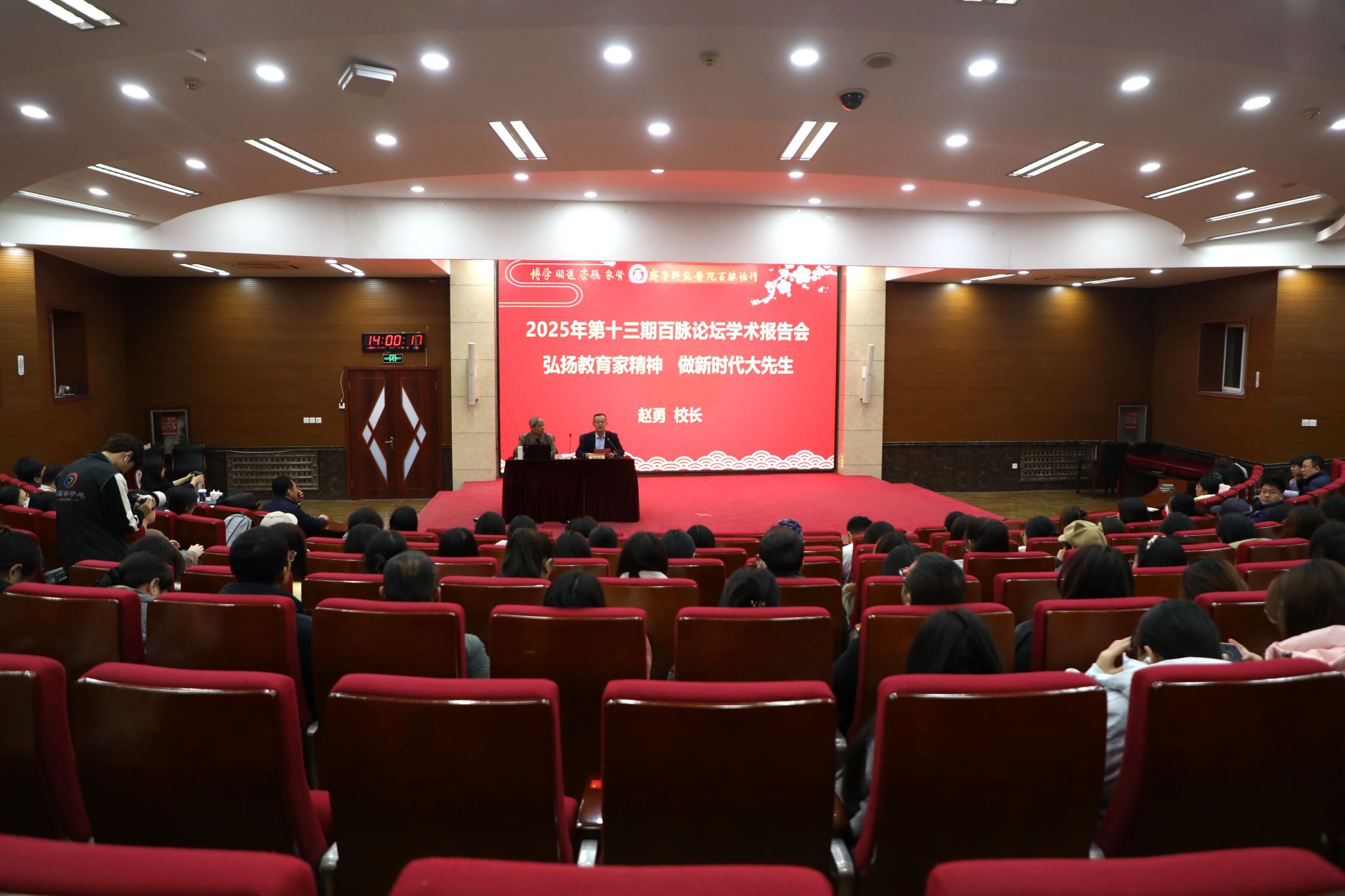 为深入学习贯彻党的二十届四中全会精神和习近平总书记关于教育的重要论述,大力弘扬教育家精神,加强新时代高水平教师队伍建设,11月27日下午,“百脉论坛”第58期(2025年第13期)专家报告会在章丘校区第一学术报告厅举办。山大基础教育集团总校长、山东大学附属中学校长赵勇教授应邀做题为《弘扬教育家精神 做新时代大先生》的专题报告。报告会由学校党委委员、副校长孙洪兆主持,各二级学院近三年新进教师代表、师范类专业学生代表近400人现场聆听。