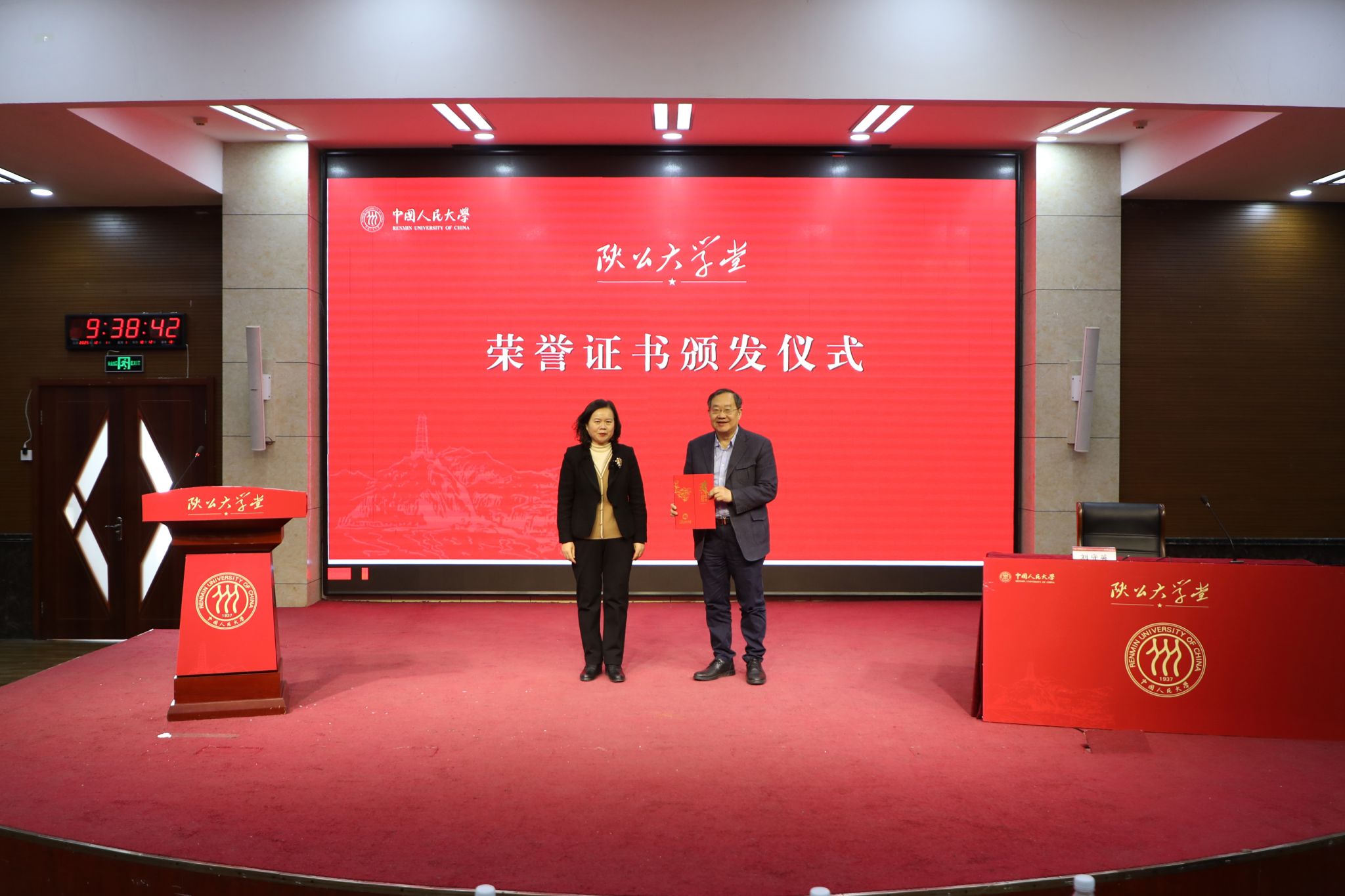 讲座开始前,赵敏、刘本昌共同为中国人民大学“陕公大学堂”BEAT365英国官网基地揭牌。赵敏为刘守英教授颁发“中国人民大学陕公大学堂主讲专家”荣誉证书。