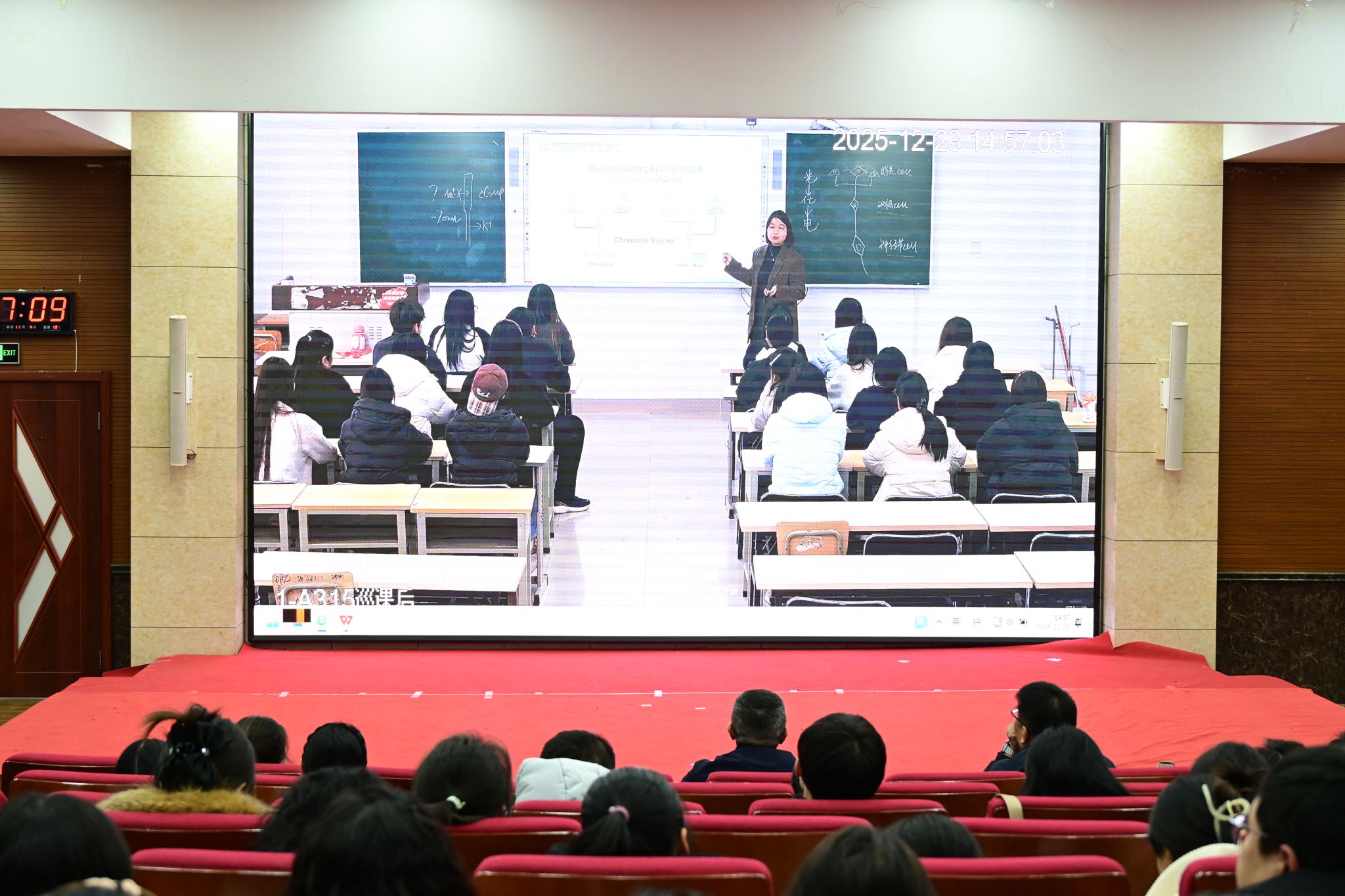本次活动严格秉持“示范引领、培训带动”的原则,采用“线下授课+线上观摩”的直播模式,确保了近300名新入职教师能够集体观摩课堂。经校级督导推荐、学校遴选,兼顾学科覆盖面与课程类型多样性,本次活动确定5门优质课程作为示范课。马克思主义学院祁凯丽老师率先开讲通识必修课《毛泽东思想和中国特色社会主义理论体系概论》,课堂聚焦核心命题,结合雨课堂即时互动功能,实时掌握学生理解情况,以“核心问题引领+数字化工具赋能”的教学模式,充分彰显了课程思想引领价值。外国语学院邹德平老师讲授专业必修课《综合英语》,创新性地将“灰犀牛理论”融入语言教学场景,课堂节奏张弛有度,互动形式丰富多样,教学环节衔接自然,充分展现了综合英语课程“语言应用+思想引领”的教学特色。生命科学学院王艺雅老师带来《人体解剖生理学》示范课,课程聚焦专业核心知识点,精准把握学科教学特点,将抽象难懂的生理机制转化为直观可感的教学内容,充分展现了“精准施教、直观易懂”的教学特色。信息科学与工程学院侯宁宁老师讲授《线性代数》,针对课程抽象性特点,通过逻辑推导,层层拆解重难点,帮助学生构建系统的知识框架,展现了理科课程严谨务实的教学风格。音乐学院司书琪老师的专业必修课《声乐》,以个性化指导为特色,通过发声示范、技巧点拨、作品赏析等环节,直观呈现声乐教学的专业方法,让观摩教师感受到艺术教育的独特魅力。