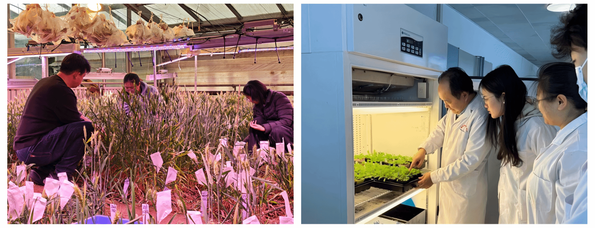 生命科学学院朱俊科教授带领的小麦智慧育种科研团队亦是如此。既坚守实验室进行周密的数据分析,又扎根在田间地头,利用数智化手段,围绕小麦种质创新与品种选育核心任务,双线联动,双管齐下,有序开展育种大田小麦越冬期分蘖数、抗冻性调查,同步推进温室加代繁育工作,保障假期科研工作不断档、育种推进不停步。