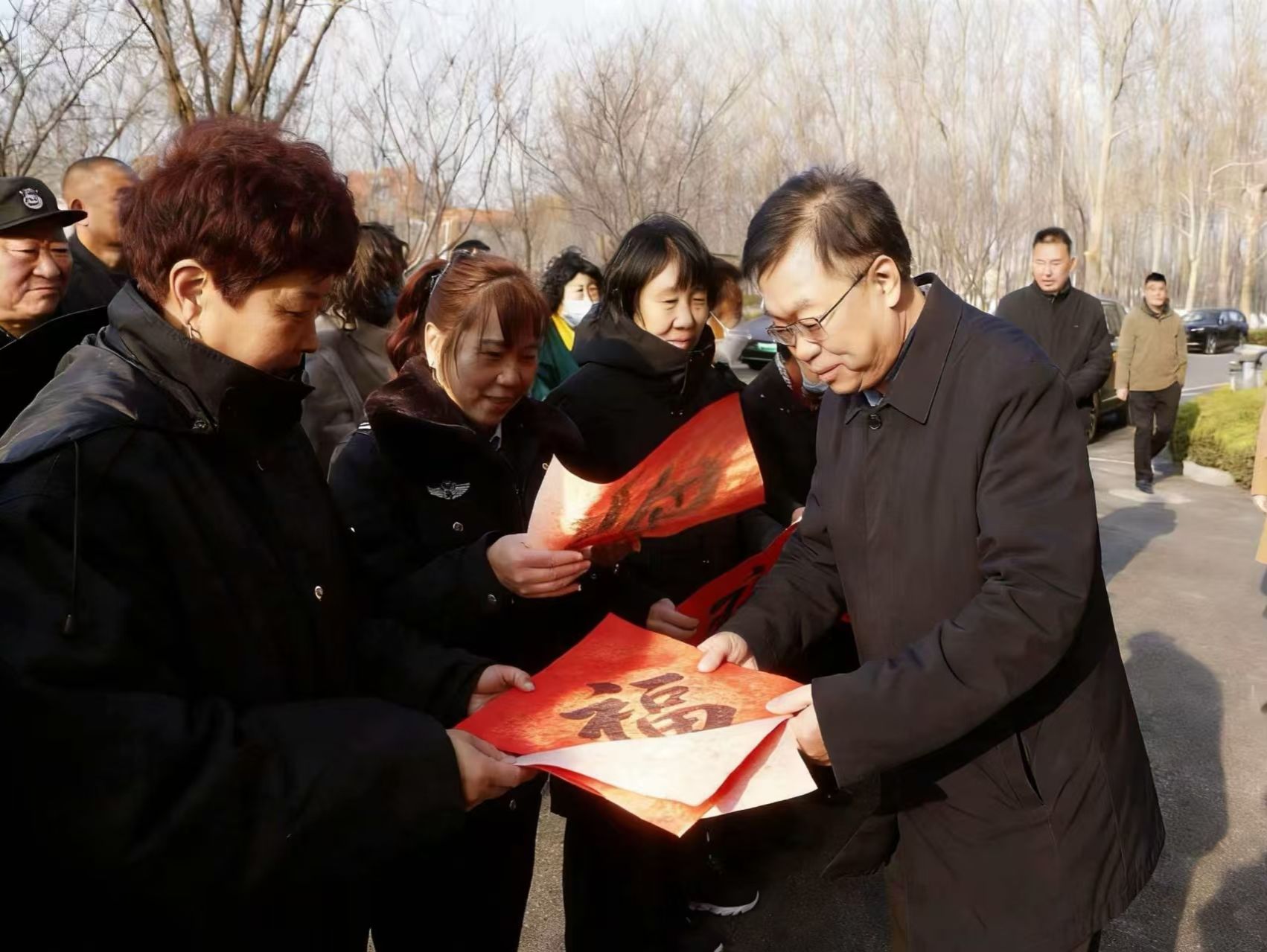 2月15日上午,党委书记赵长林,党委副书记、校长郑秀文,党委副书记赵敏分别到章丘校区和历下校区看望慰问春节期间值守工作人员,党委委员、统战部部长宋新刚,党委委员、宣传部部长孙磊,党委办公室(学院办公室)、历下校区管理办公室、安全管理处、后勤管理处相关负责人陪同走访。