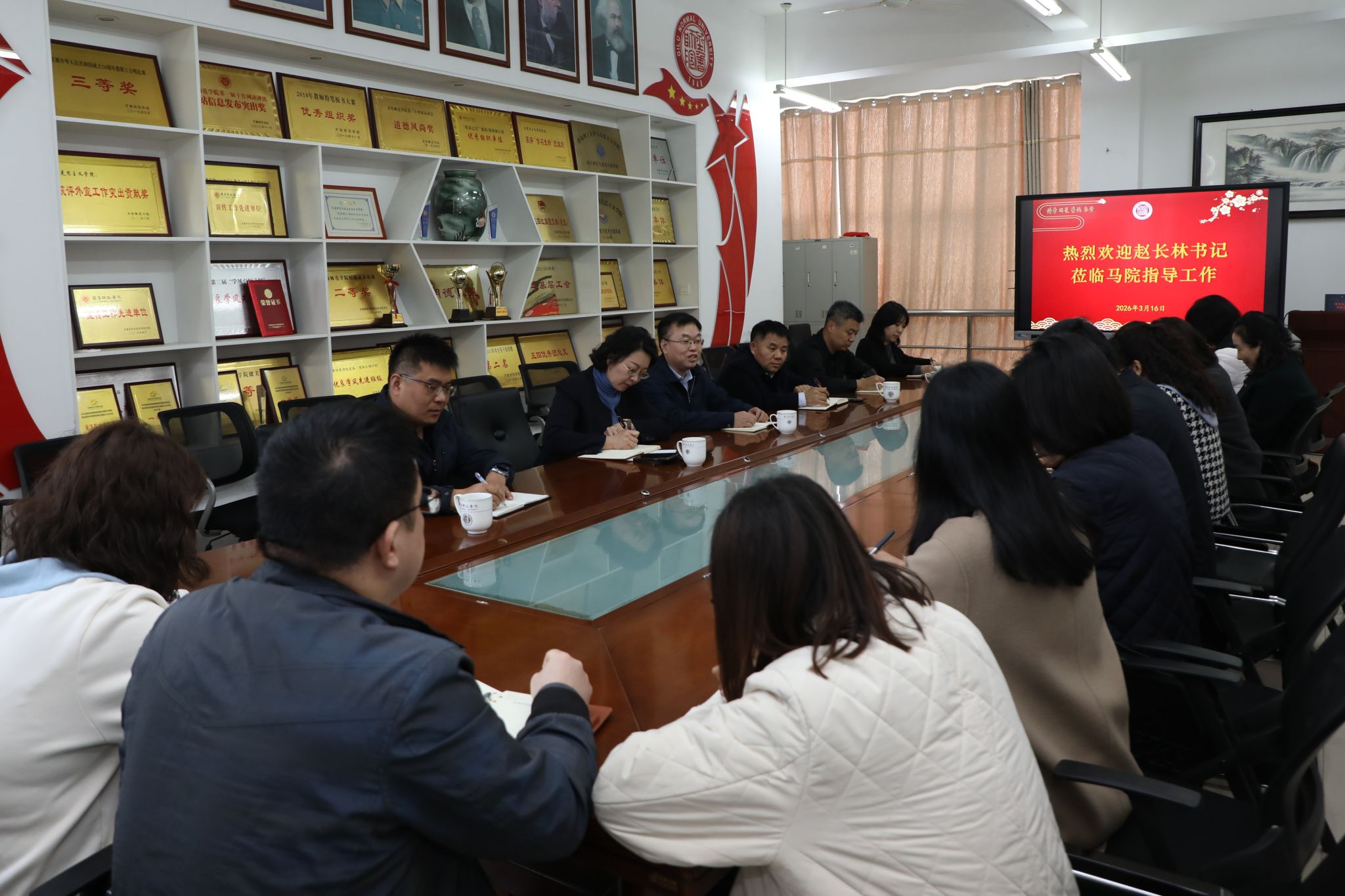 3月16日下午,党委书记赵长林到马克思主义学院调研并现场指导工作,党委委员、宣传部部长孙磊,党委(学院)办公室、教务处、科研处等相关职能部门负责人陪同调研,马克思主义学院党政领导班子及教师代表参加会议。