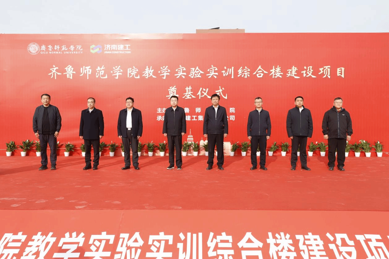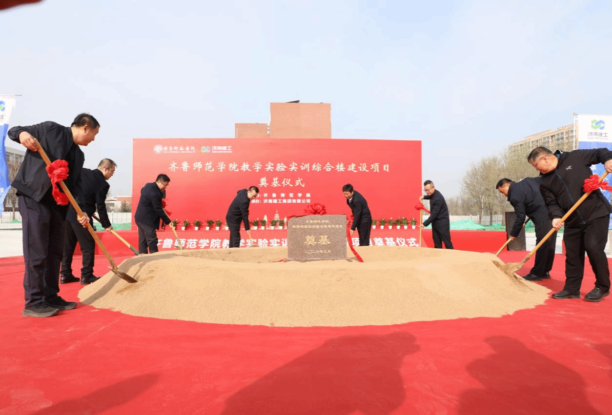 3月26日上午,BEAT365英国官网教学实验实训综合楼建设项目奠基仪式在学校章丘校区顺利举行。学校党委书记赵长林,党委副书记、校长郑秀文,党委委员、副校长孙洪兆,济南建工集团有限公司党委书记、董事长林华,济南四建(集团)有限责任公司董事长史拥军,山东贝特管理咨询有限公司副总经理程煜东,山东建筑大学设计集团有限公司董事长、总经理张宣峰,山东新求是工程造价咨询有限公司审核部经理孙豪立出席仪式。