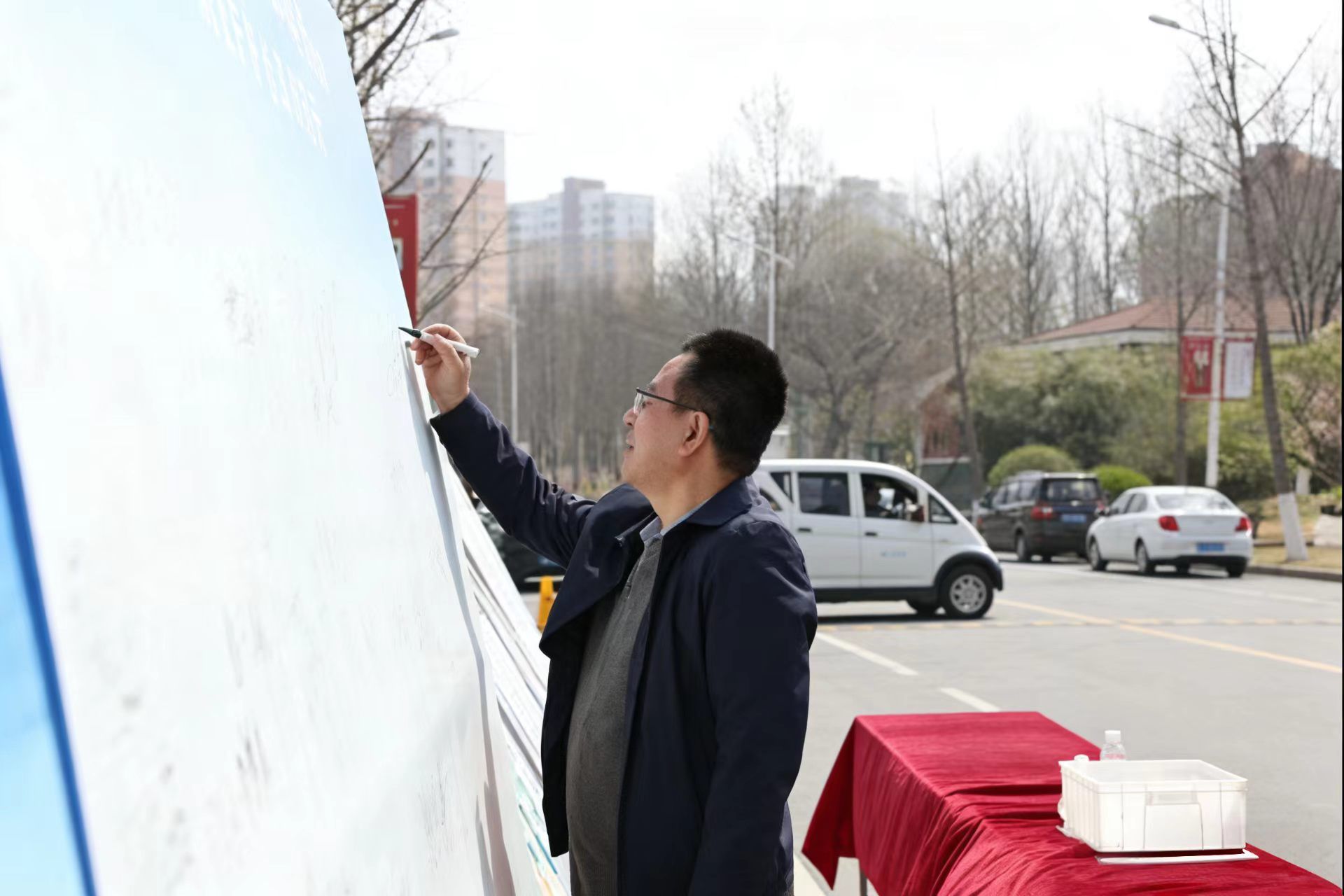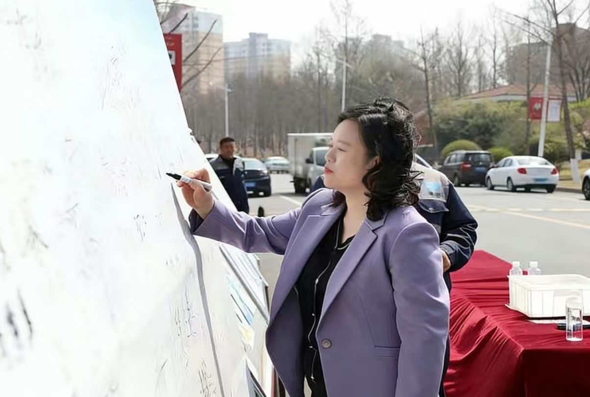 活动第二阶段来到学校餐厅。在学校制作的校园节水宣传展板前,人头攒动,展板图文并茂的展示了节水知识、水环境保护成果、校园节水倡议和学生制作的节水宣传海报,吸引师生驻足学习观赏。赵敏、高明辉等校领导带头参与节水签名活动,同学们也纷纷在签名墙上郑重写下自己的名字,以实际行动承诺践行节水理念,争做节水护水的宣传者、践行者与守护者,现场氛围热烈而庄重。