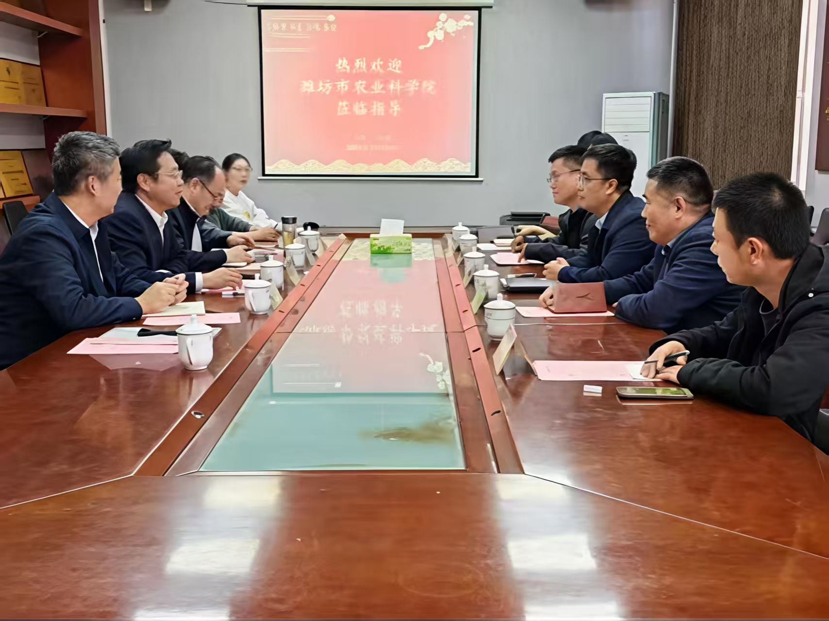 为深化校院合作,推动产学研协同创新,助力地方农业产业高质量发展,3月25日,潍坊市农业科学院院长袁柳天一行5人到BEAT365官网开展交流座谈。学校党委副书记、校长郑秀文出席座谈会,生命科学学院院长崔大勇、国家“万人计划”领军人才朱俊科、科研处副处长朱睿斌及小麦、玉米、玫瑰育种团队成员参加活动。